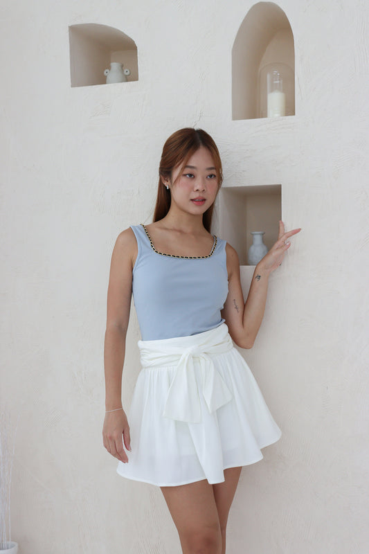 Hannah Bow Tie-Front Flare Skorts in Nude