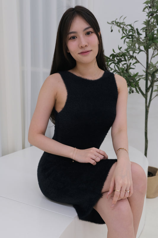 Alyssa Furry Sleeveless Dress in Black