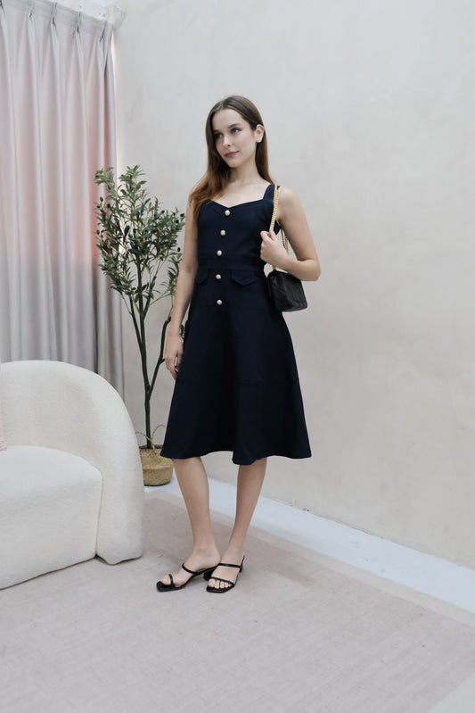 Lorey Button Work Dress in Navy