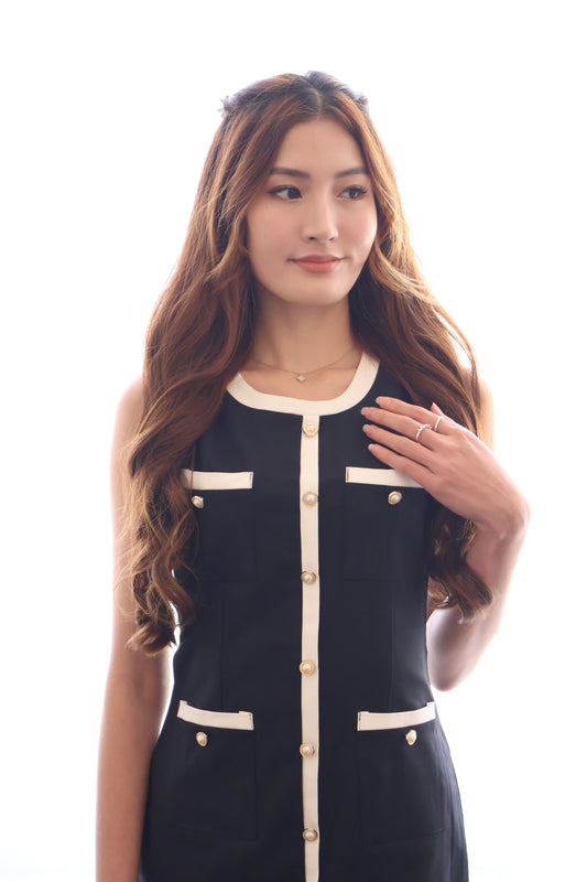 Aurora Pearl Button Dress In Classic Black