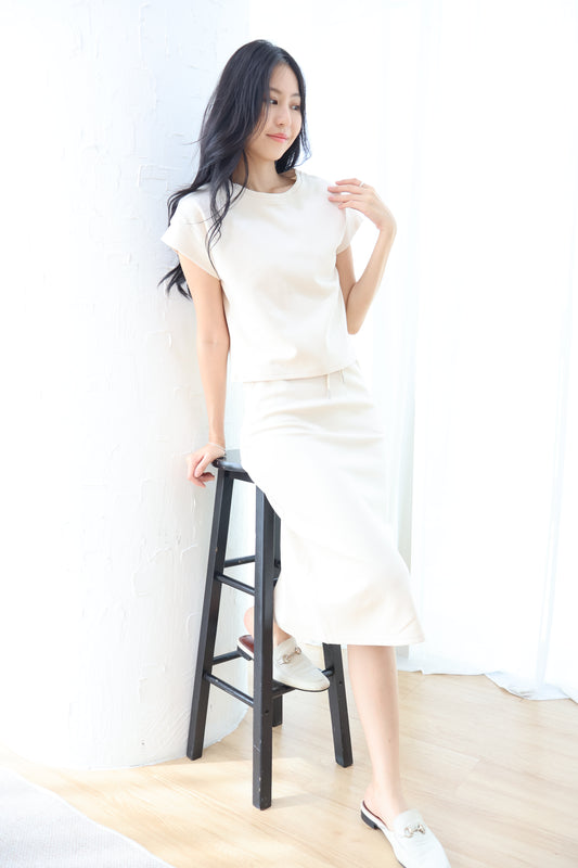 *CNY* Jìng Corduroy Classic Slit Skirt In White