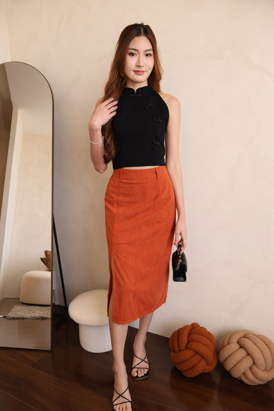 *CNY* Jìng Corduroy Classic Slit Skirt In Mandarin