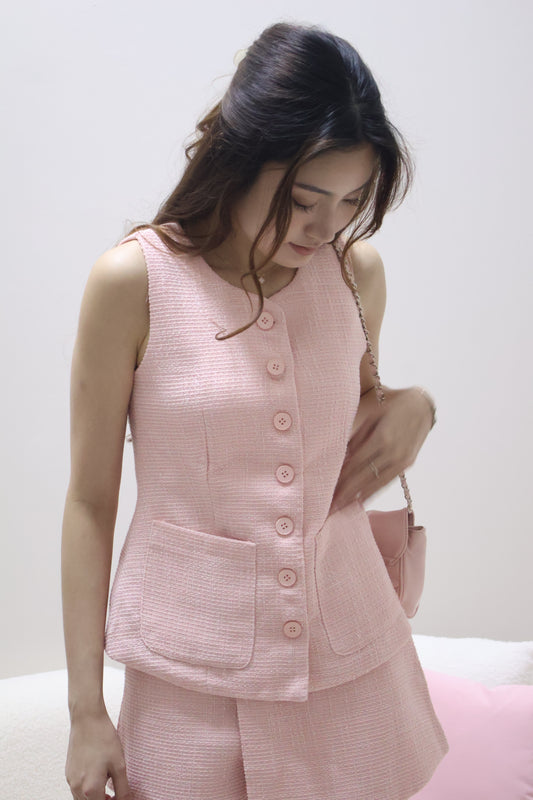 Febe Clover Button Ribbon Tie Co-Ords Set In Pink