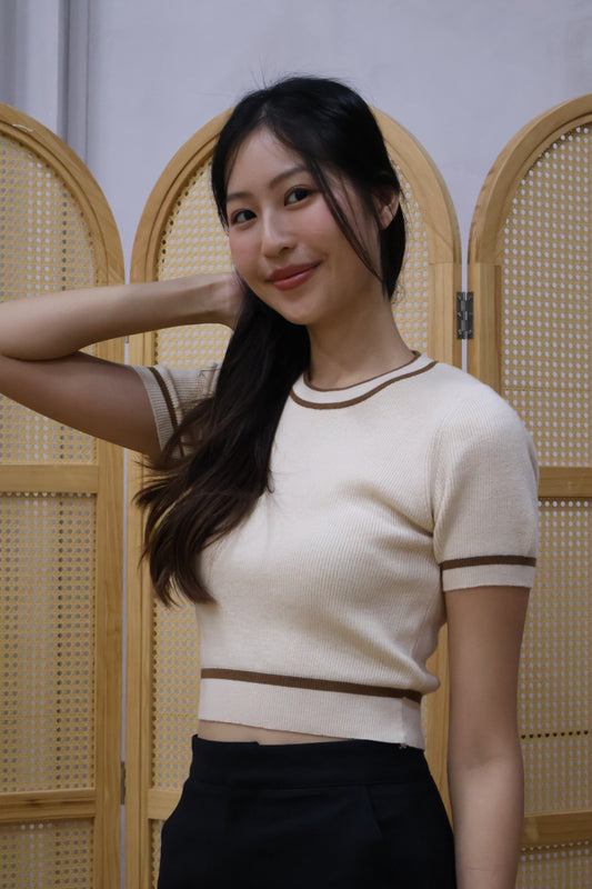 Sold outAudrie Soft Knit Contrast Top In Oat