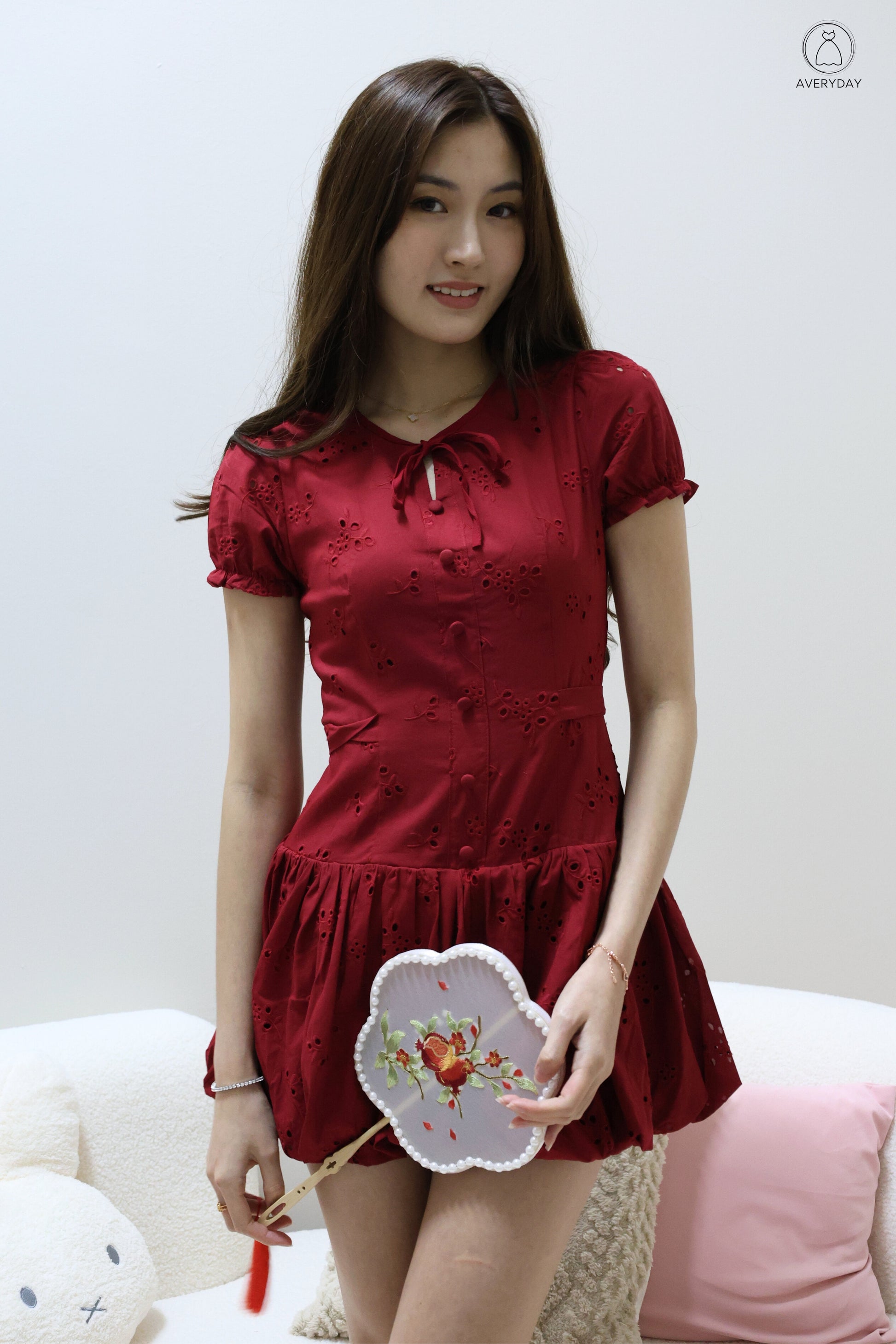 蕴红 (Yùn Hóng) Eyelet Flutter Bubble Romper Dress