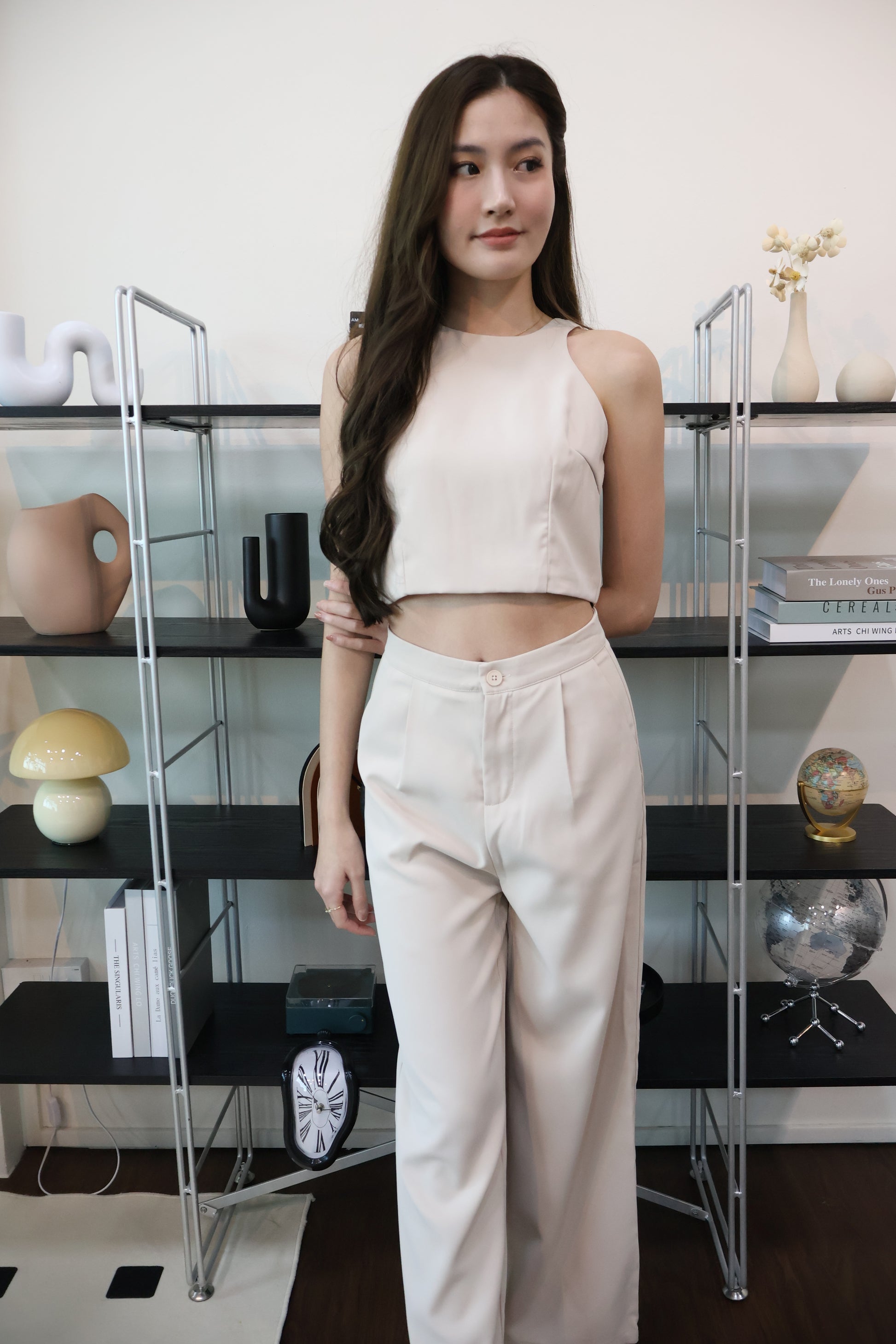 Amarice Minimalist Co-Ords Pants Set In Cream