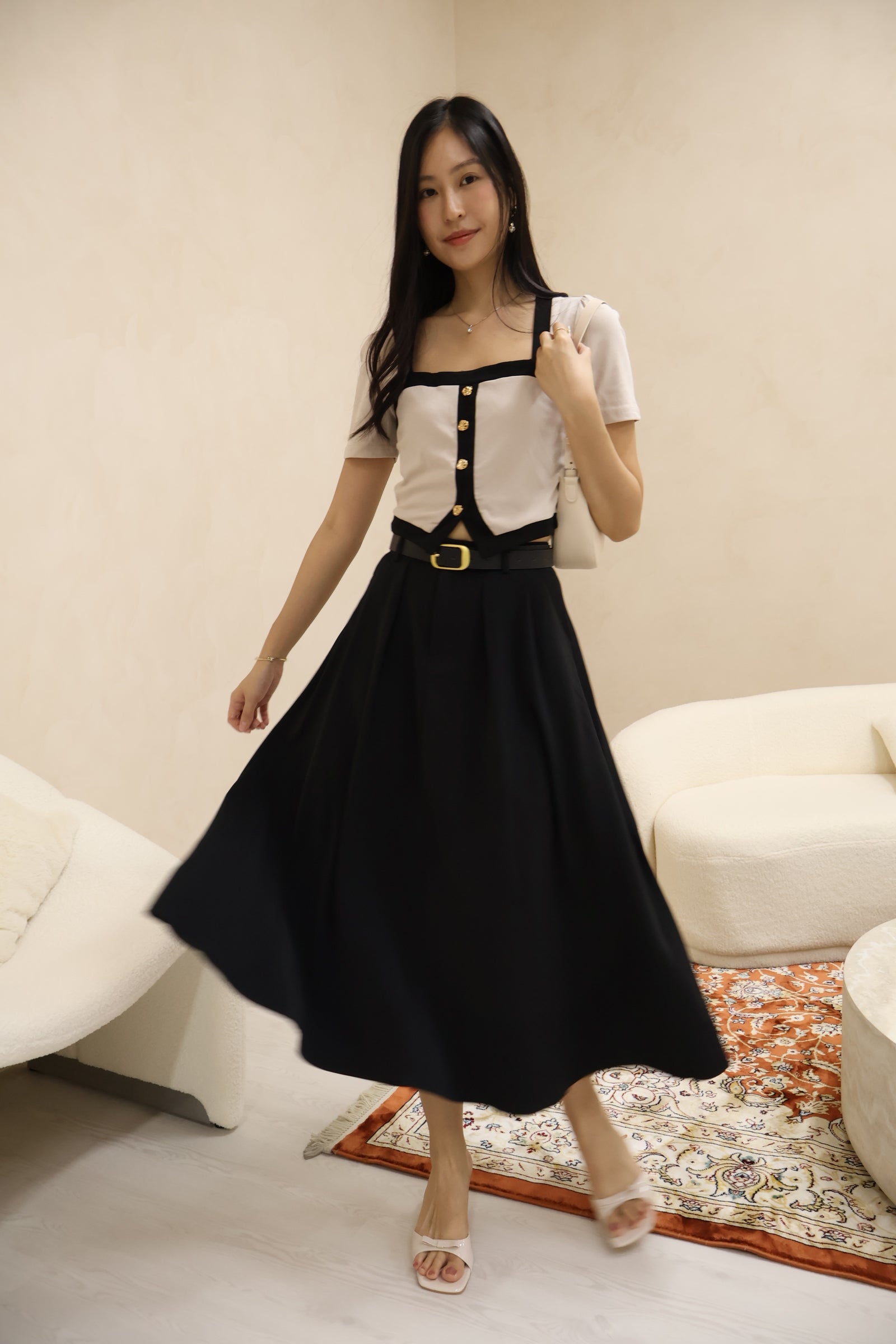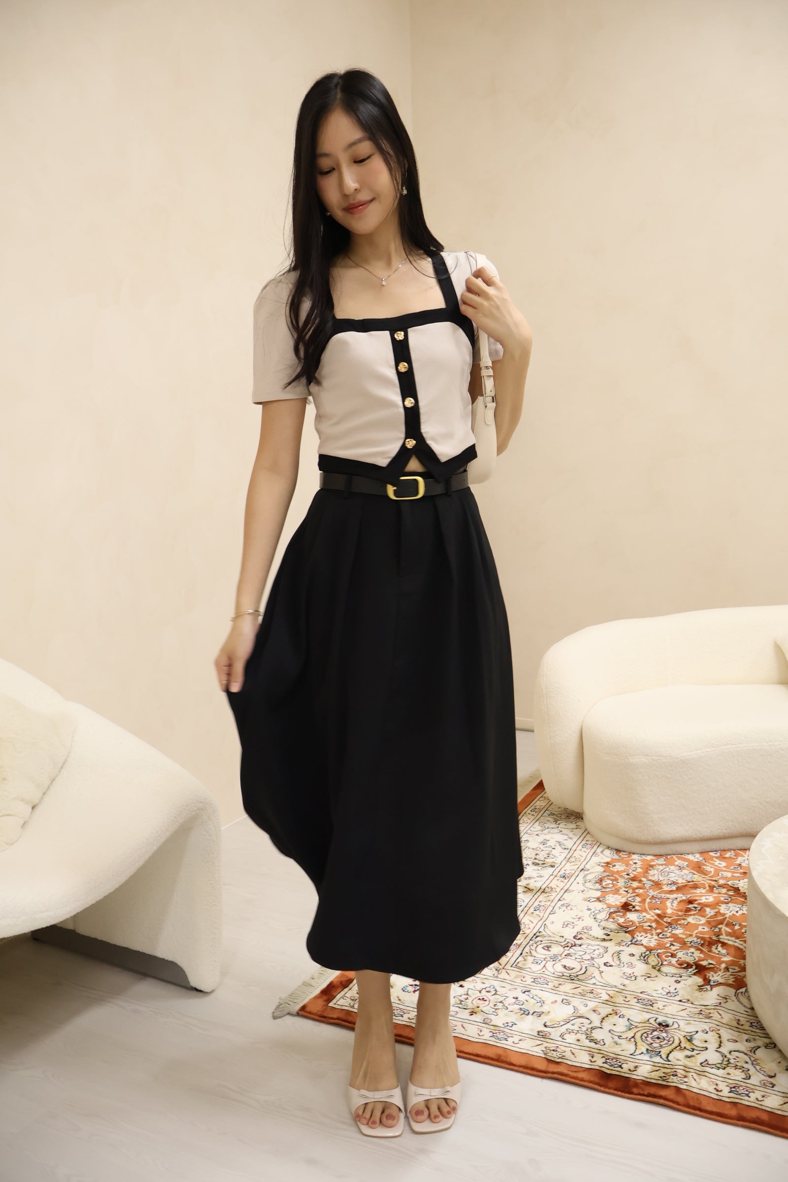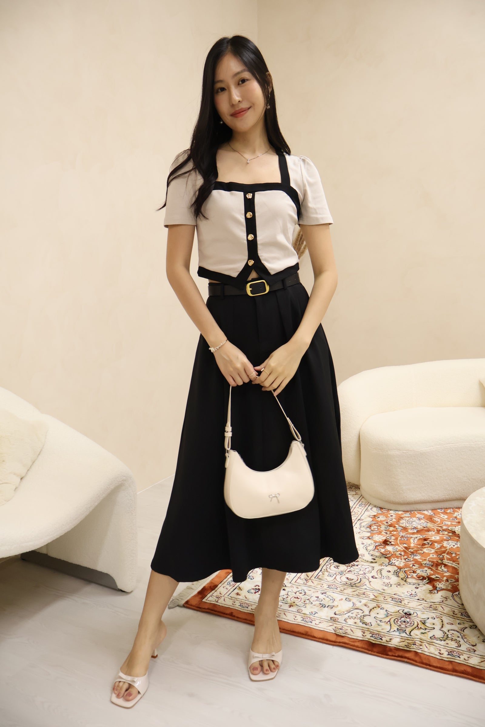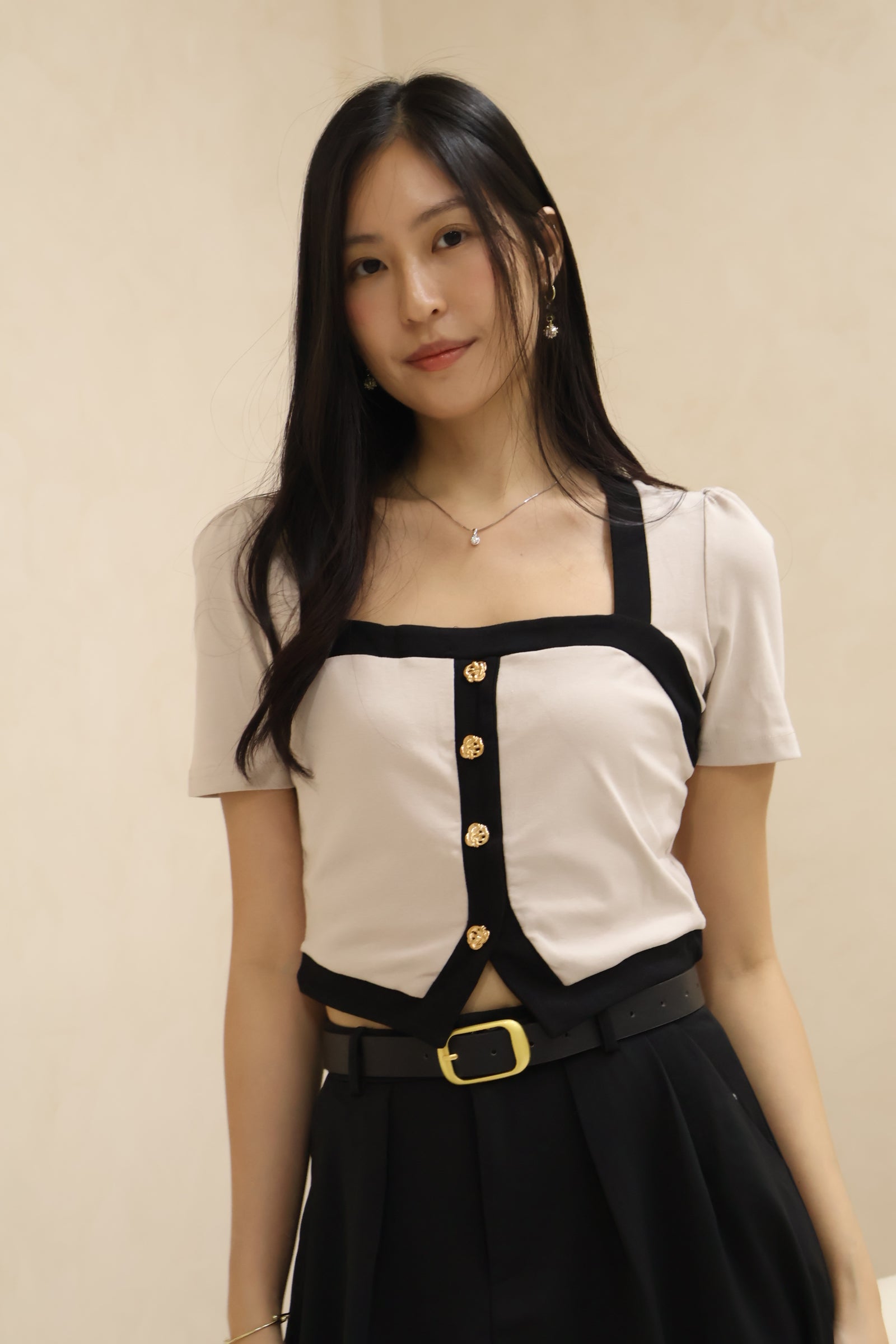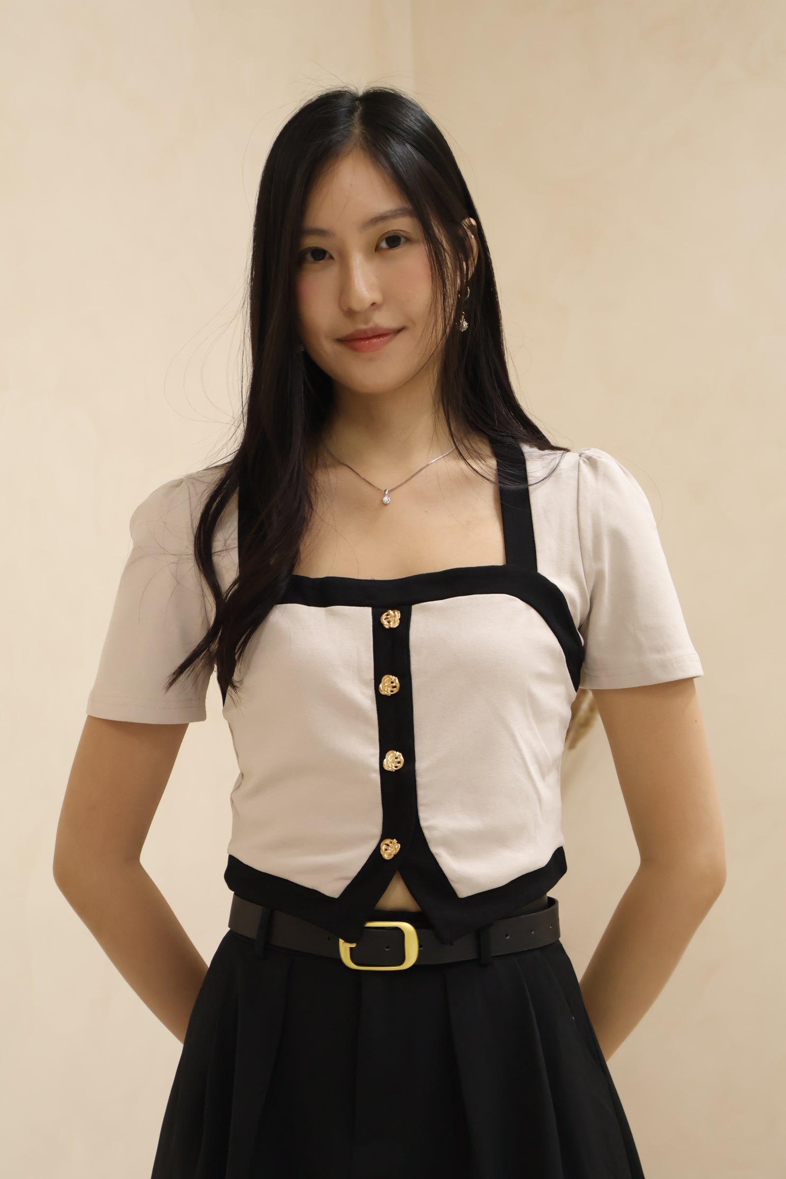 Featuring the same timeless contrasting rims and topped with its signature delicate seashell buttons, Amerlyn v2 brings a subtle yet elevated charm to your everyday wardrobe. Its square neckline elongates your frame beautifully, while the sleek sleeve cut adds that extra touch of class.