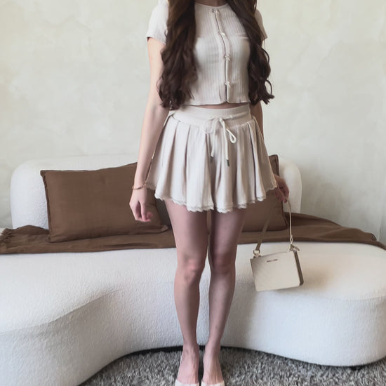 Playful yet effortlessly chic – Arie is designed to bring out your soft, feminine side with a touch of everyday charm. This co-ords set features a dainty ribbon-tie front detail, thoughtfully designed with an inner panel so you can wear it worry-free. Crafted in ribbed fabric, it gives off a casual, laid-back vibe while still feeling put together.