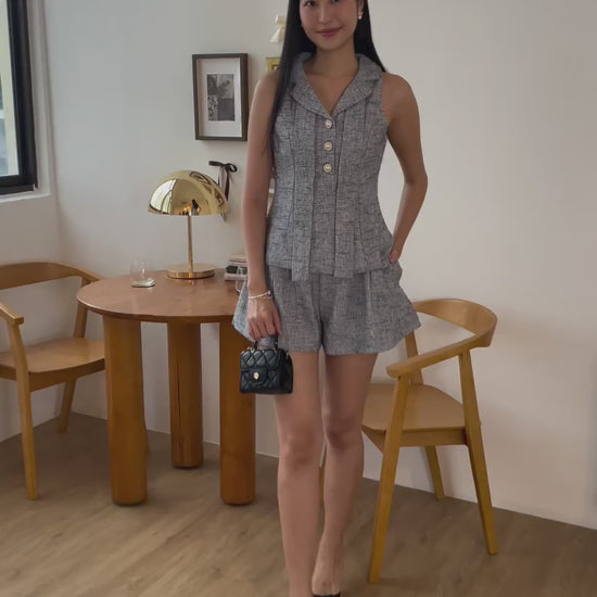 Step into elegance with the Carla Tweed Collar Co-Ords Set—a luxe ensemble that exudes sophistication with a playful twist. Crafted from premium tweed material, this set is elevated with pearl button accents and a structured collar for that chic, preppy vibe. The tailored fit is designed to highlight your silhouette, giving you that coveted hourglass shape. Complete with a matching bottom that features functional pockets, Carla is perfect for days when you want to look effortlessly put together. From brunch dates to city strolls, this set is your go-to for polished perfection.