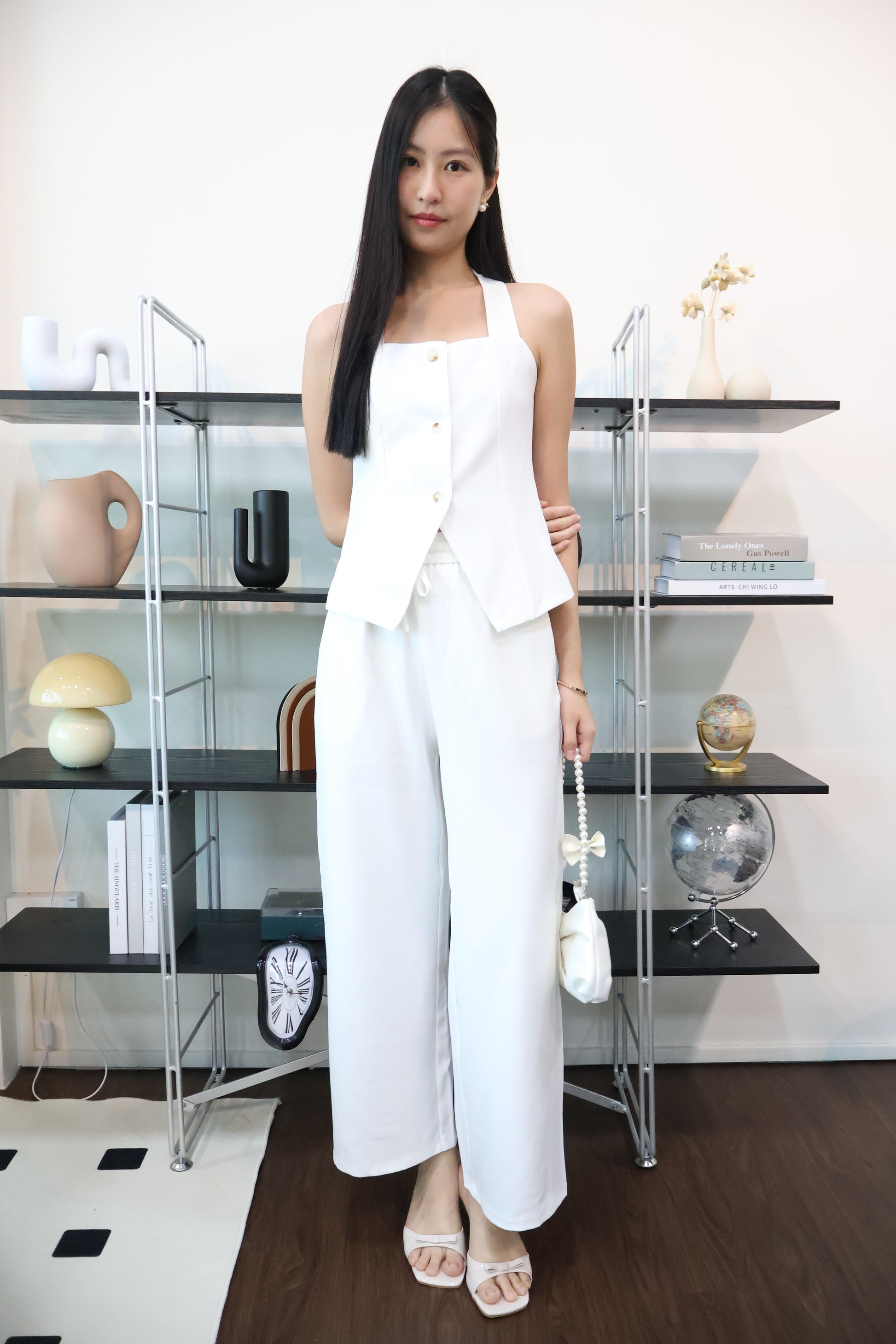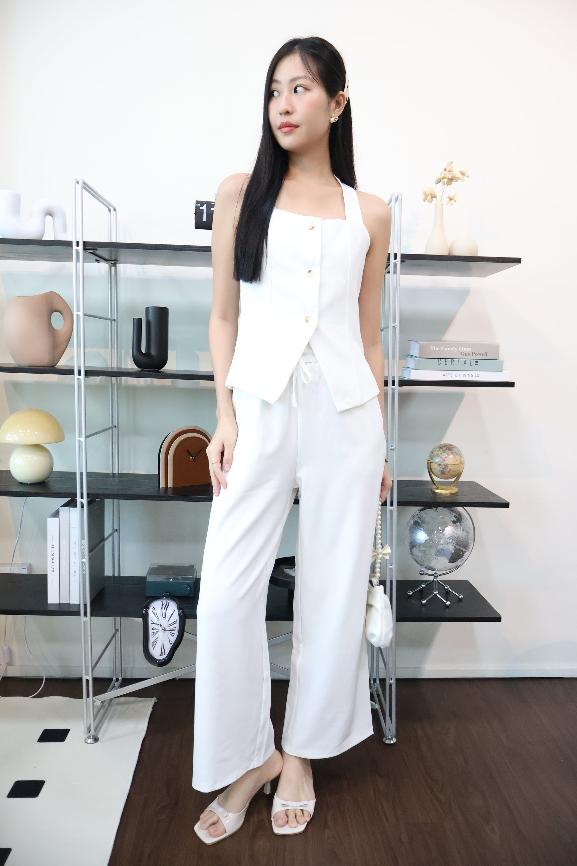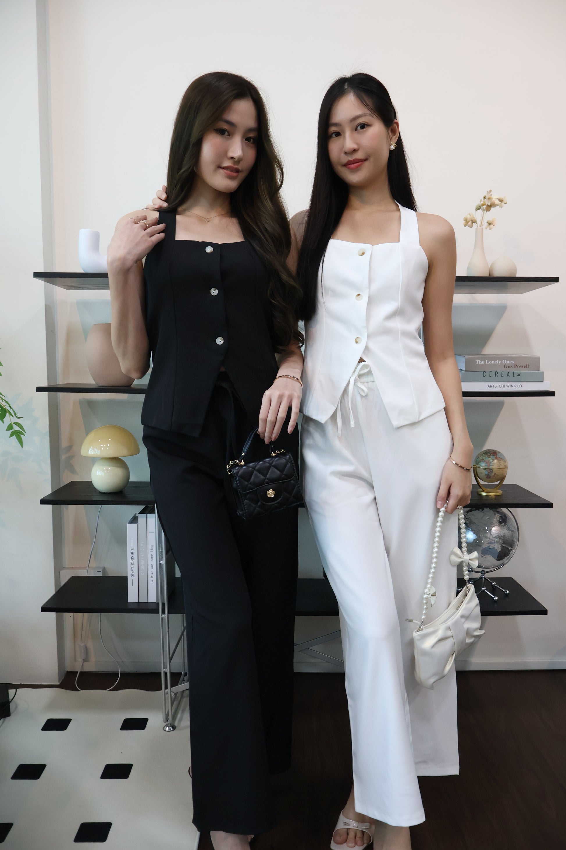 Elevate your workwear game with the Charlotte Business Casual Button Co-Ords Set—a perfect blend of sophistication and comfort. Featuring a chic vest top with functional buttons and a covered back for a polished, professional touch. Paired with stretchable waisted pants, designed for all-day ease, complete with a ribbon tie front for an adjustable fit and two functional pockets for added convenience.