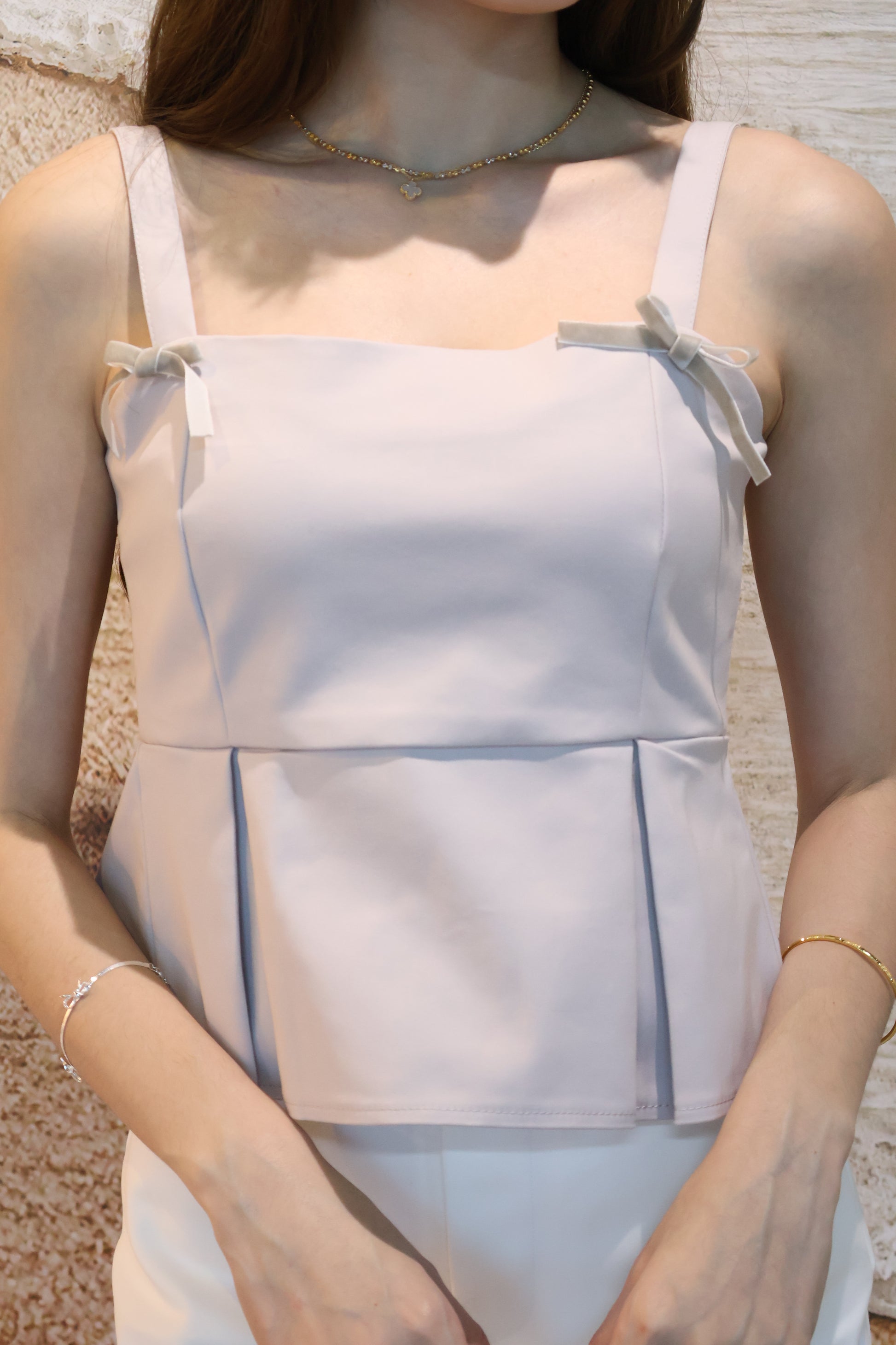 Coney Pleat Strap Top (With Detachable Ribbon Pins)