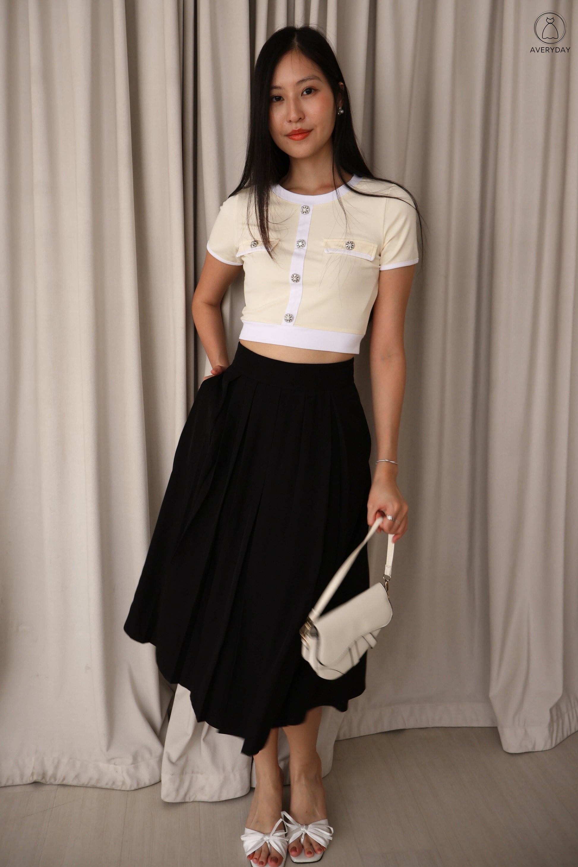 Elaine Pinwheel Contrast Button Top In Daffodil