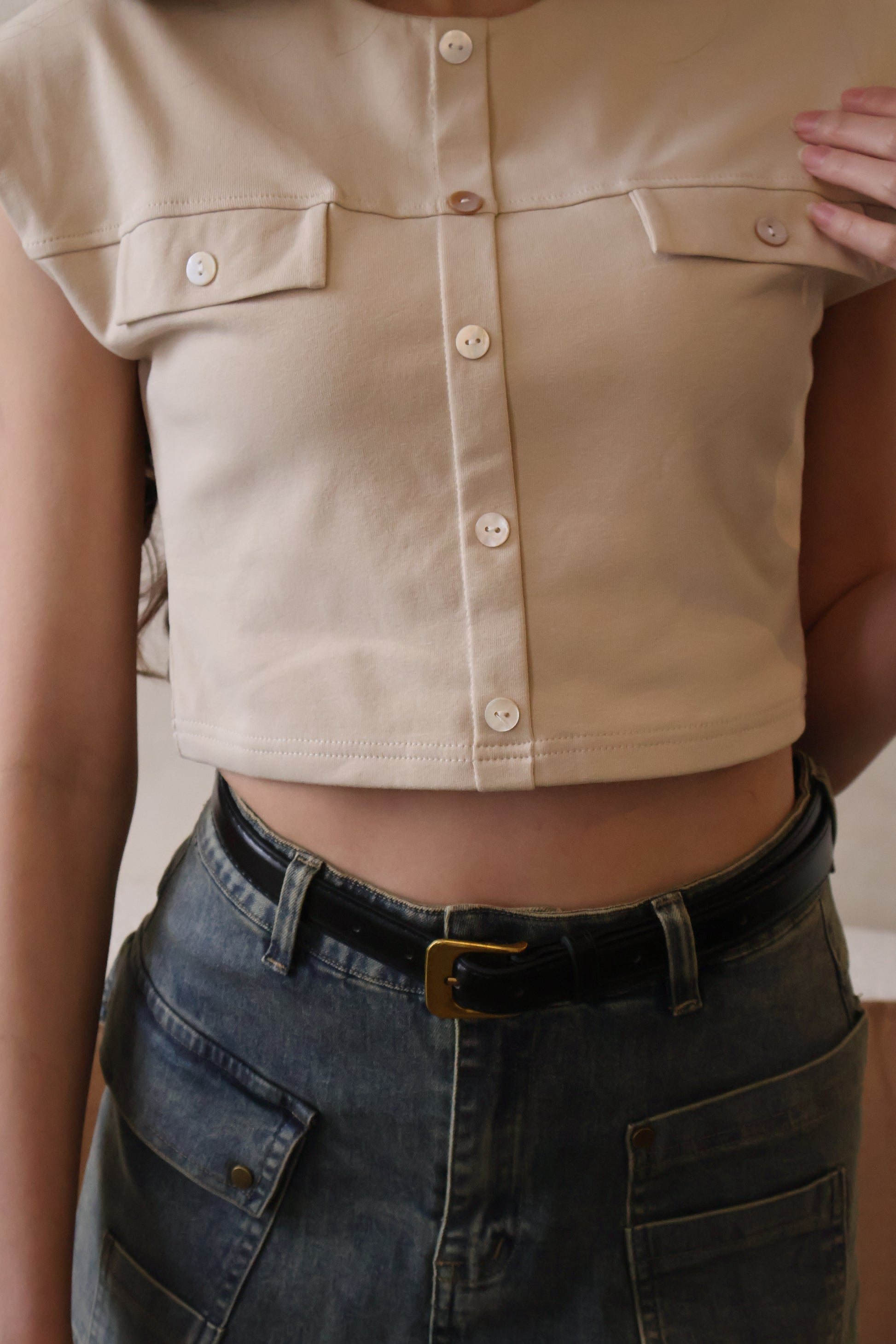 A wardrobe essential with a touch of elegance — Jesse is your go-to staple for effortless styling. Designed with non-functional buttons across the front, this minimalistic top adds just the right amount of detail to elevate your everyday basics.