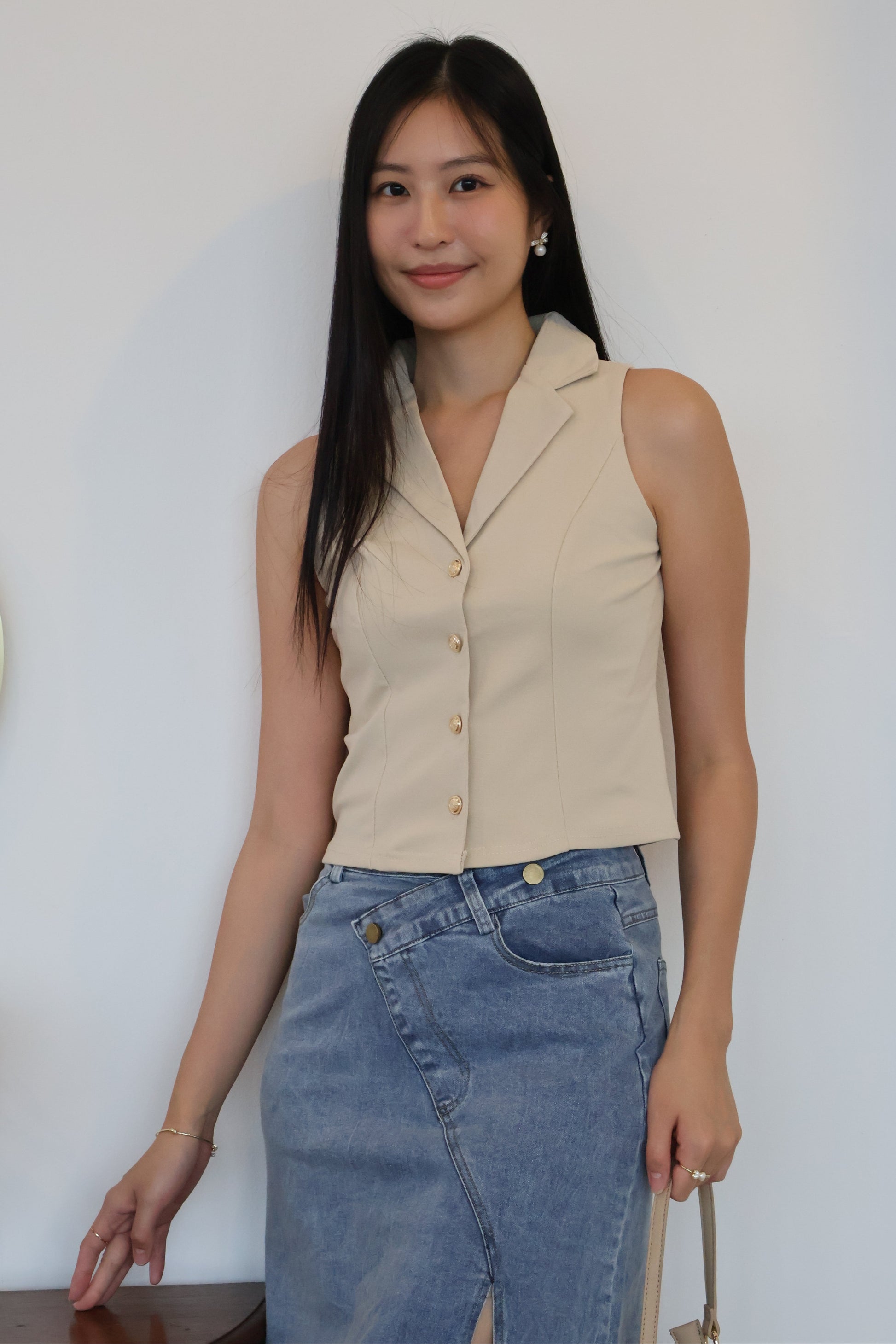 The Jomaine Button Vest Top is the ultimate wardrobe staple, offering effortless style with a touch of elegance. Featuring gold functional front buttons, this top exudes a posh flair while remaining versatile enough to pair with anything from casual denim to polished work pants. Its simple yet elevated design makes it a must-have for any fashion-forward wardrobe, perfect for adding a chic, in-season touch to your outfits.