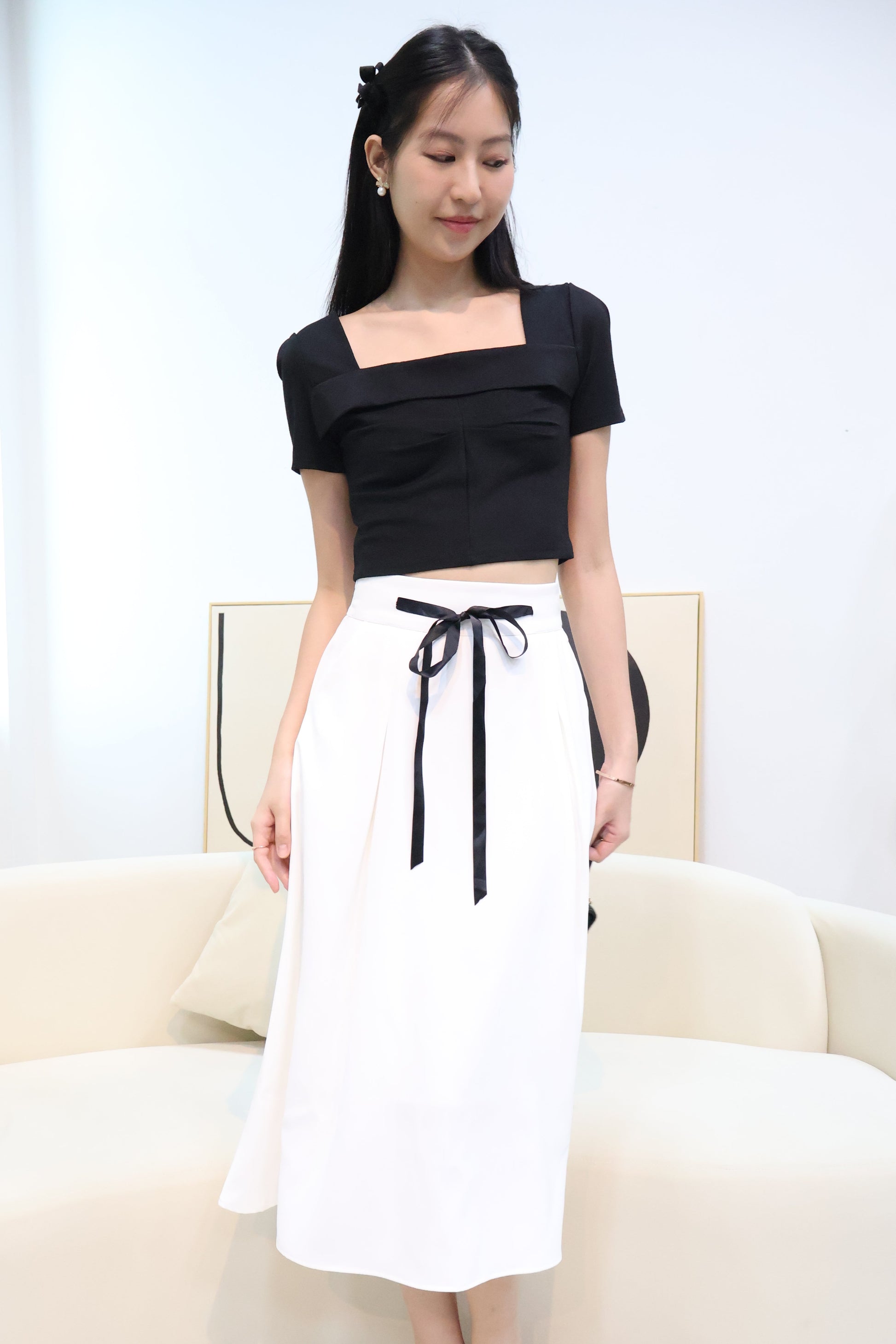 The top you'll keep reaching for — Leila features a flattering square neckline that adds a polished touch, while the ruched center detail hugs all the right places for a feminine, sculpted fit. Crafted in a short length that hits just right — no awkward tucks or crops here. It’s the perfect balance of comfort and chic, and pairs effortlessly with any bottoms, from denim to tailored skirts. A must-have versatile staple in every wardrobe. Highly recommended.