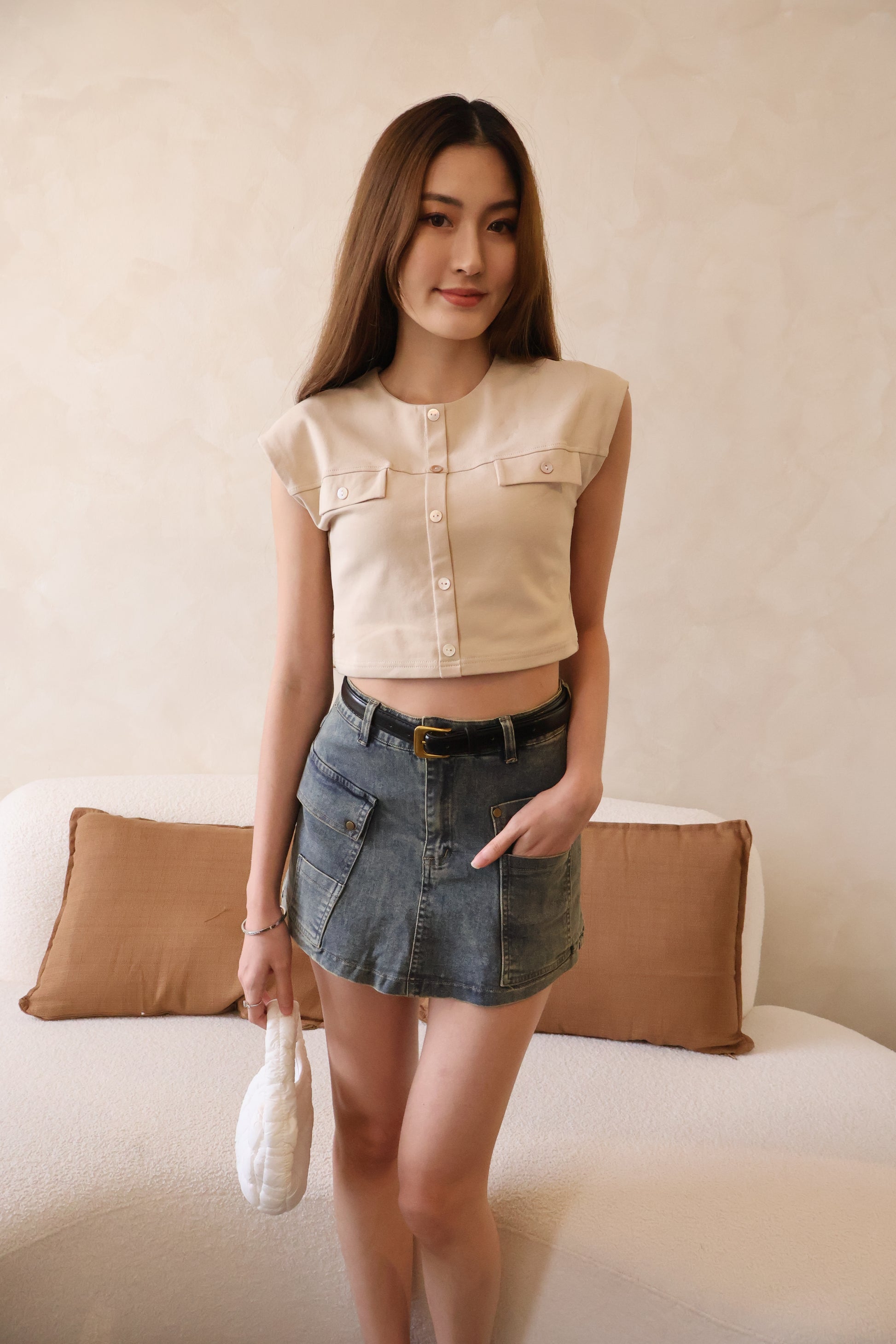 The perfect blend of vintage charm and modern style — meet Lisa. This pair of denim skorts is designed with a super flattering cut that effortlessly pairs with any basic top. It comes with a detachable, adjustable belt featuring gold-accented hoops, adding a touch of old money elegance to your look.