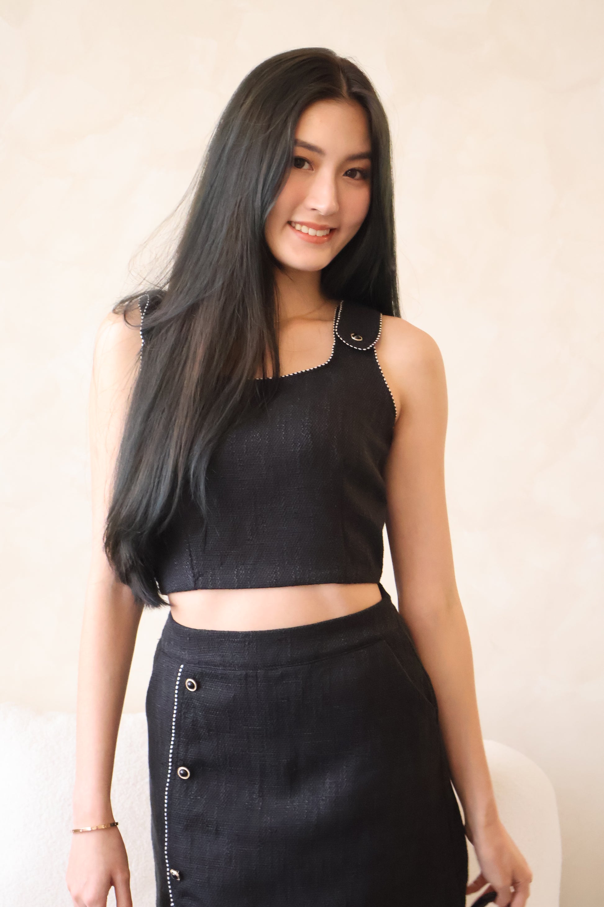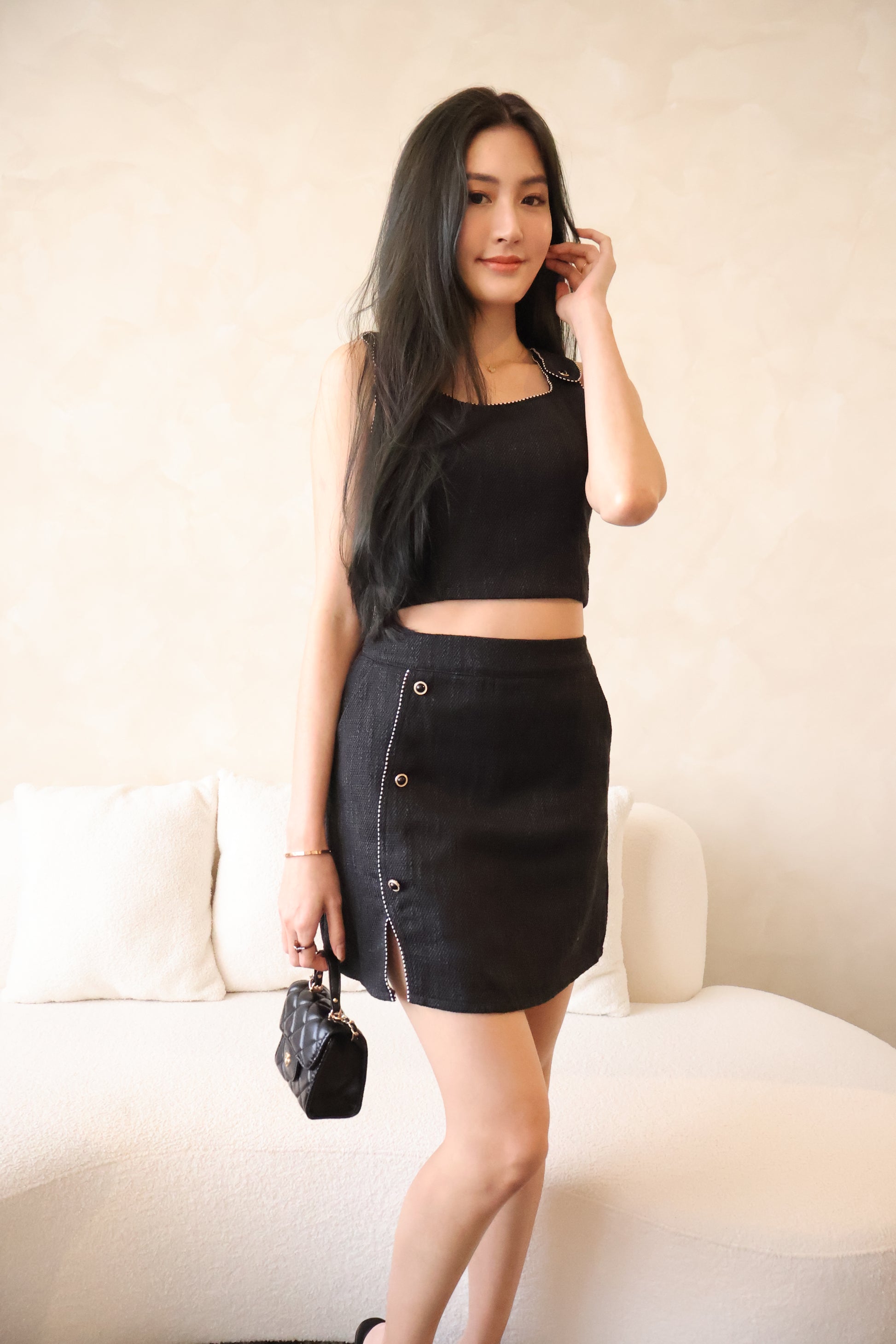 Fall head over heels for the Lovestruck Tweed Co-Ords Set, a dreamy blend of elegance and charm. Crafted from premium tweed fabric, this set features delicate button details on both the top and skorts, adding a touch of sophistication. The overlapping details on the straps of the top adds on a touch of playfulness to the look, making it the perfect ensemble stand out in the crowd.