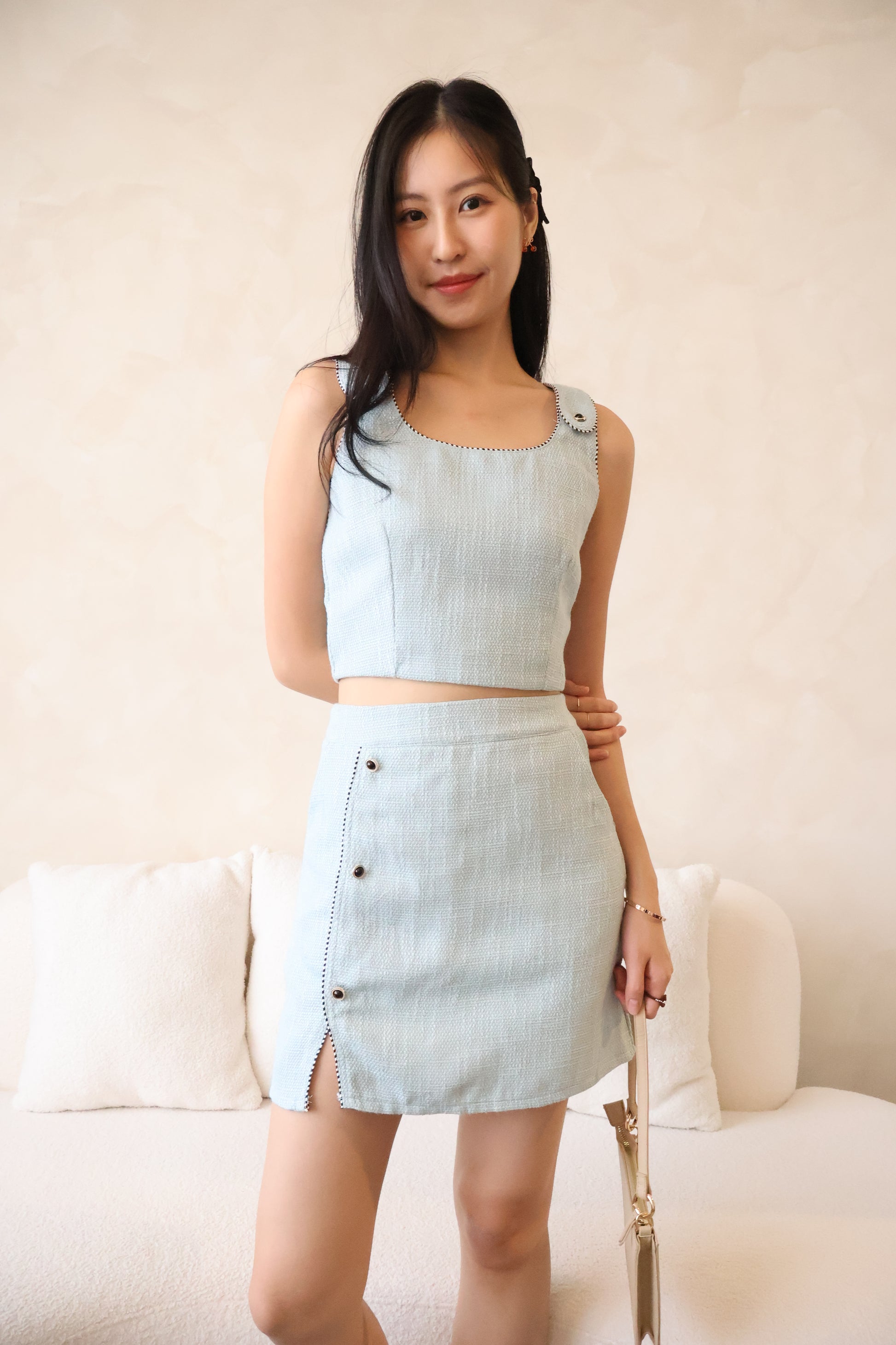 Fall head over heels for the Lovestruck Tweed Co-Ords Set, a dreamy blend of elegance and charm. Crafted from premium tweed fabric, this set features delicate button details on both the top and skorts, adding a touch of sophistication. The overlapping details on the straps of the top adds on a touch of playfulness to the look, making it the perfect ensemble stand out in the crowd.