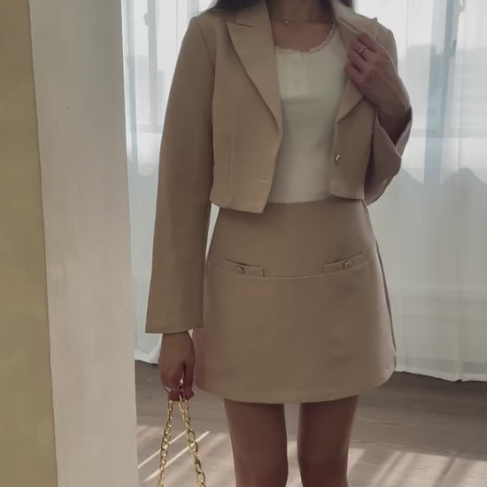 Melissa Bejeweled Button Blazer Co-Ords Set In Beige