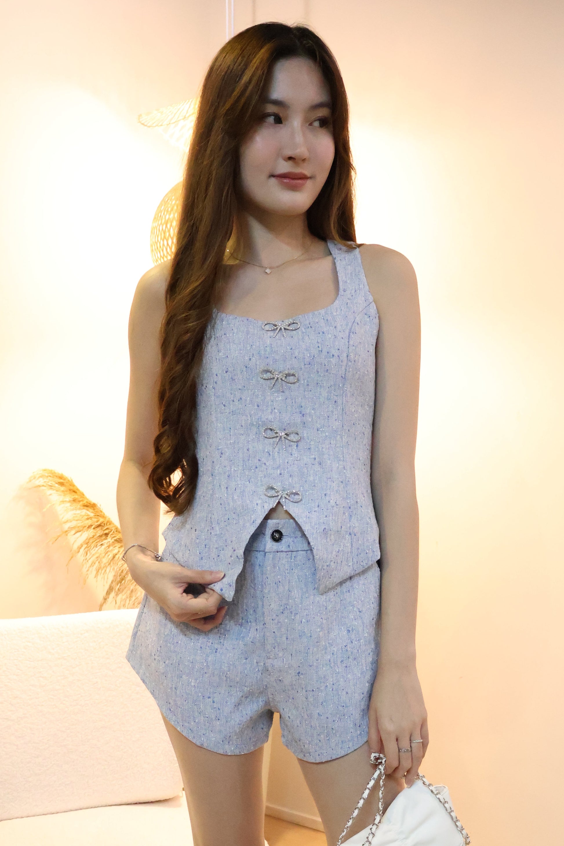 Milly Tweed Co-Ords Set In Blue (With Detachable Bling Ribbon Pins)