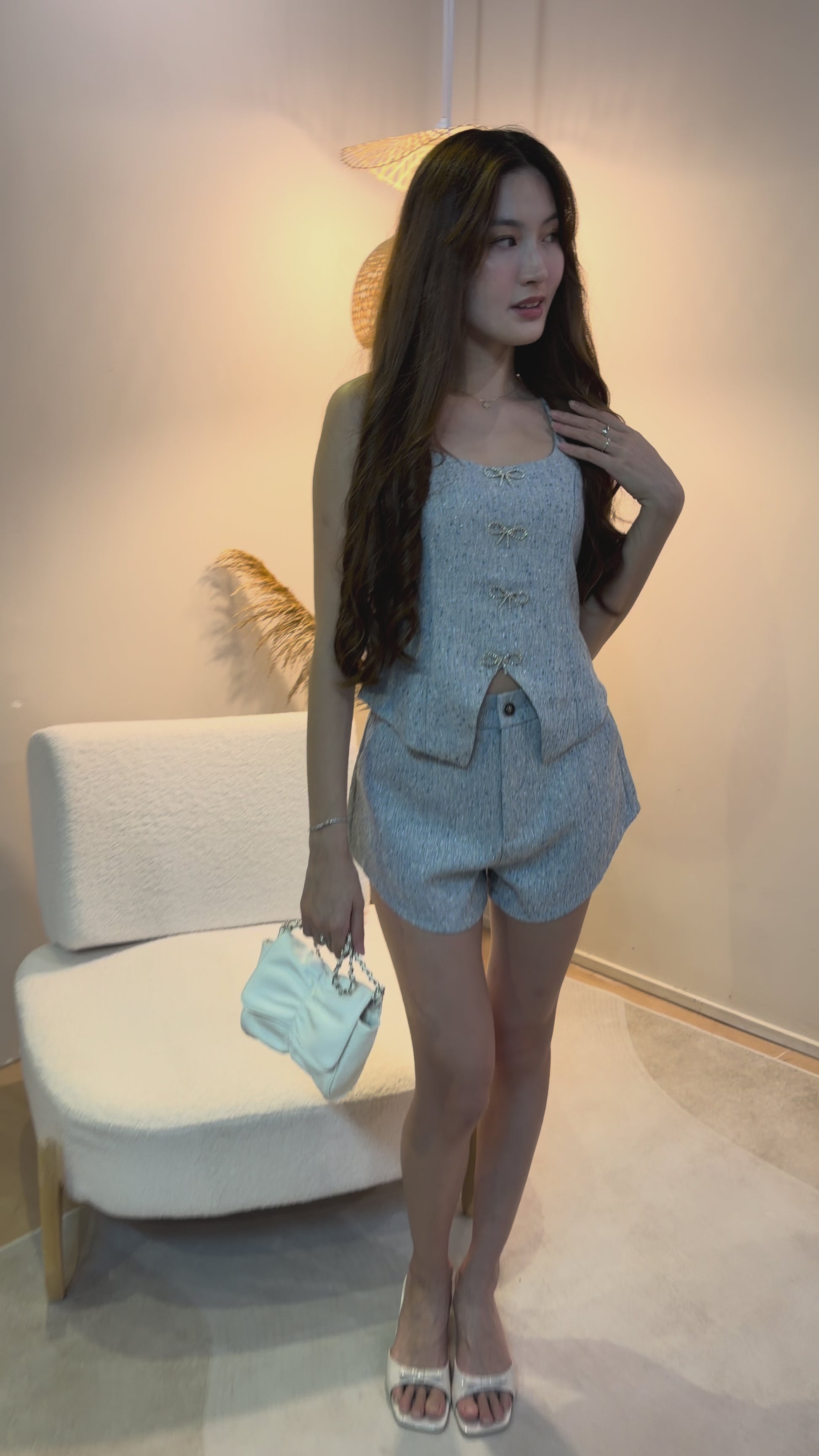 The top features slim straps that beautifully elongate the neckline, creating a sleek and flattering silhouette. Each set comes with four detachable bling-studded ribbon pins — add them for a statement, feminine flair or remove them for a clean, minimalist look. Two styles in one? Yes, please.