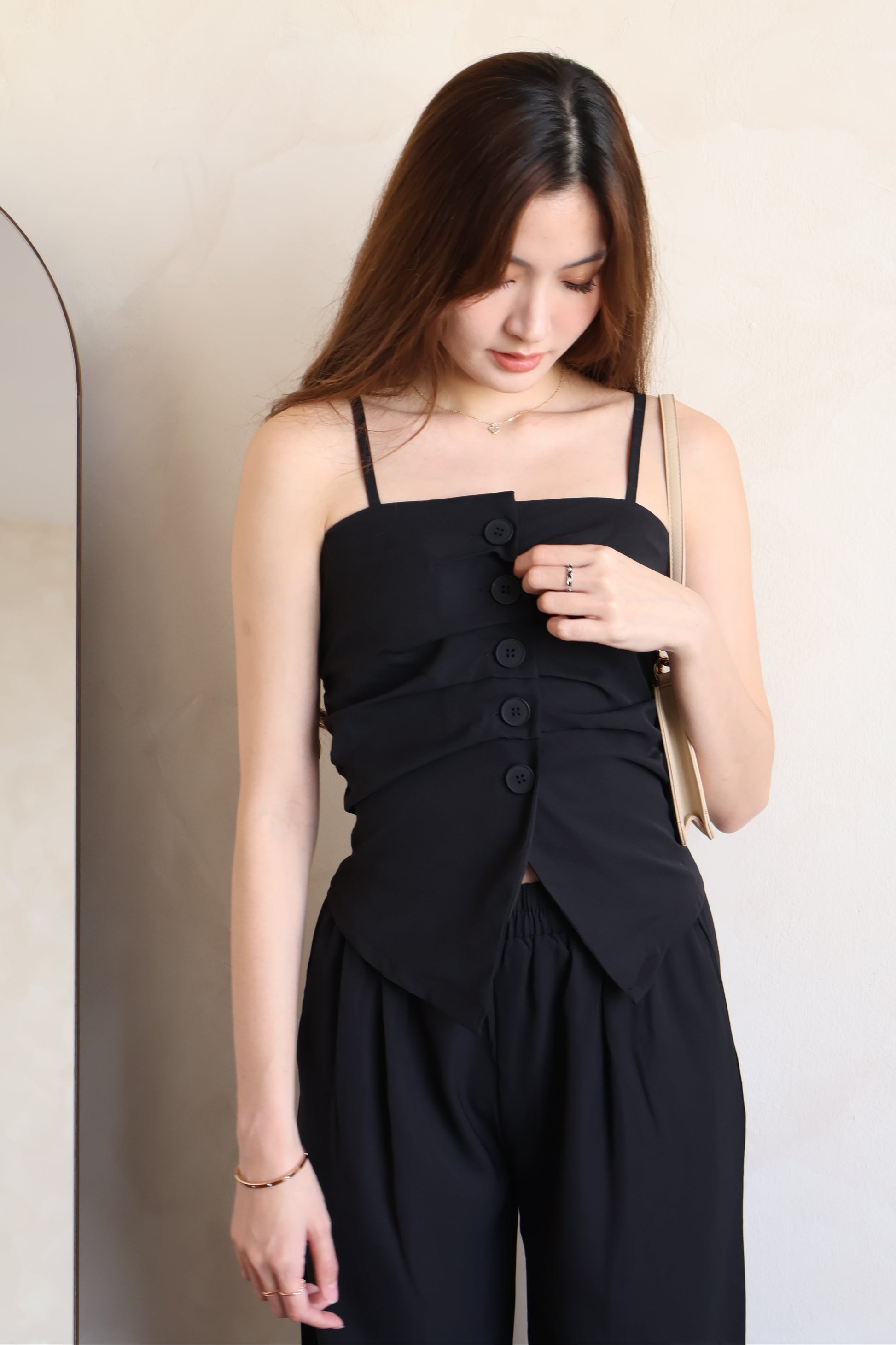 The top features a flattering layered ruched front with an ultra-stretch elasticized back, giving a slimming, fitted effect without feeling restrictive. Sharp edge hems help visually elongate your frame, while the delicate thin straps enhance the neckline for a soft, elongated look.