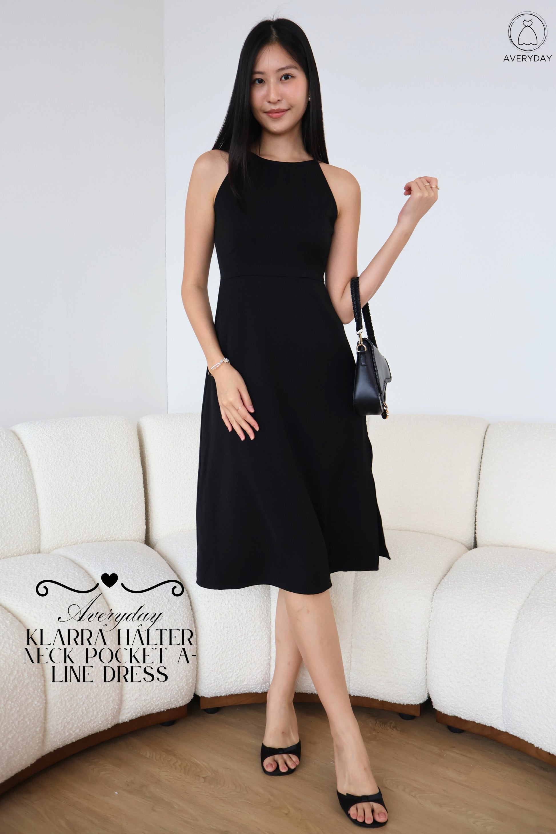 Simplicity meets elegance with Klarra. Designed with a flattering halter neckline that elongates the torso and a fit-and-flare silhouette that enhances your figure while ensuring comfort. Complete with two functional side pockets and a subtle side slit for that extra feminine touch. Perfect for both work and weekend, Klarra transitions seamlessly from desk to dinner—layer it with accessories or throw on a blazer for a polished office look. Effortlessly chic, endlessly versatile. 🤍