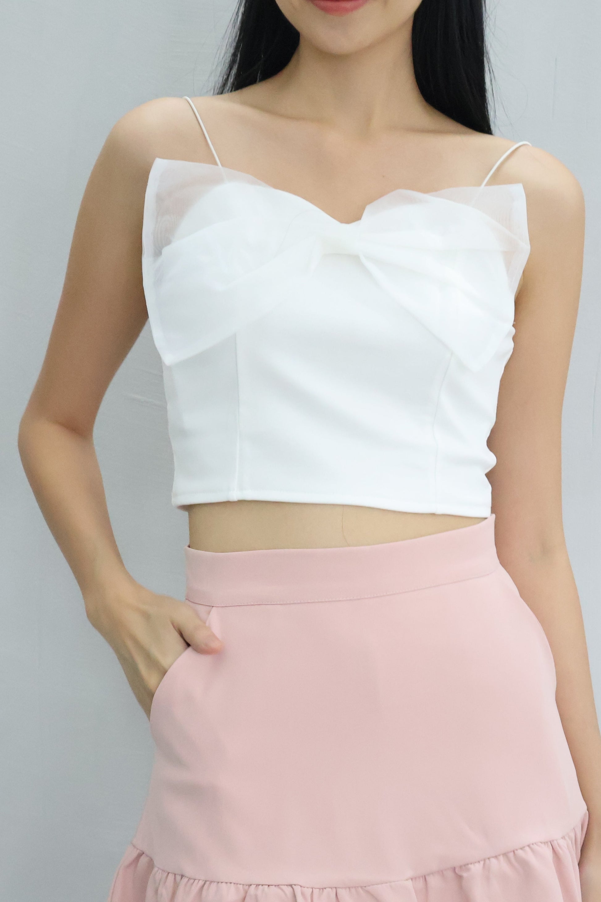 Upgrade your style game with the Rien Mesh Ribbon Camisole. This elegant piece features a delicate mesh ribbon at the front, adding a unique touch to a versatile staple. Available in neutral hues, it pairs effortlessly with any bottoms. Perfect for staying cool and stylish during those hot CNY reunion steamboat dinners.
