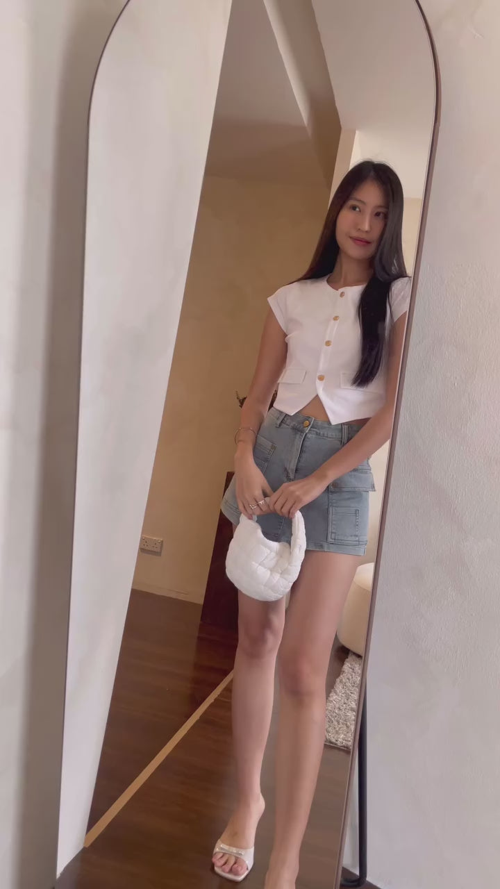 Model Ad stands at 173cm, with measurements of 30.5" ptp & 24" waist.