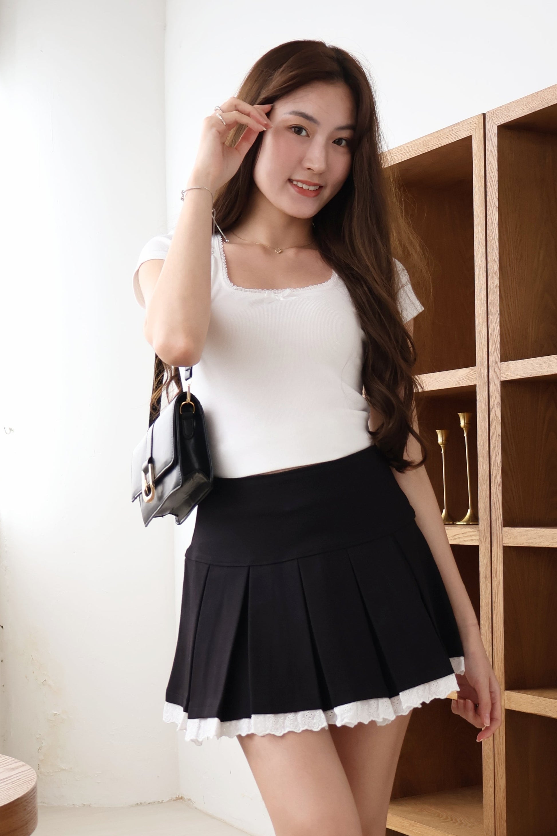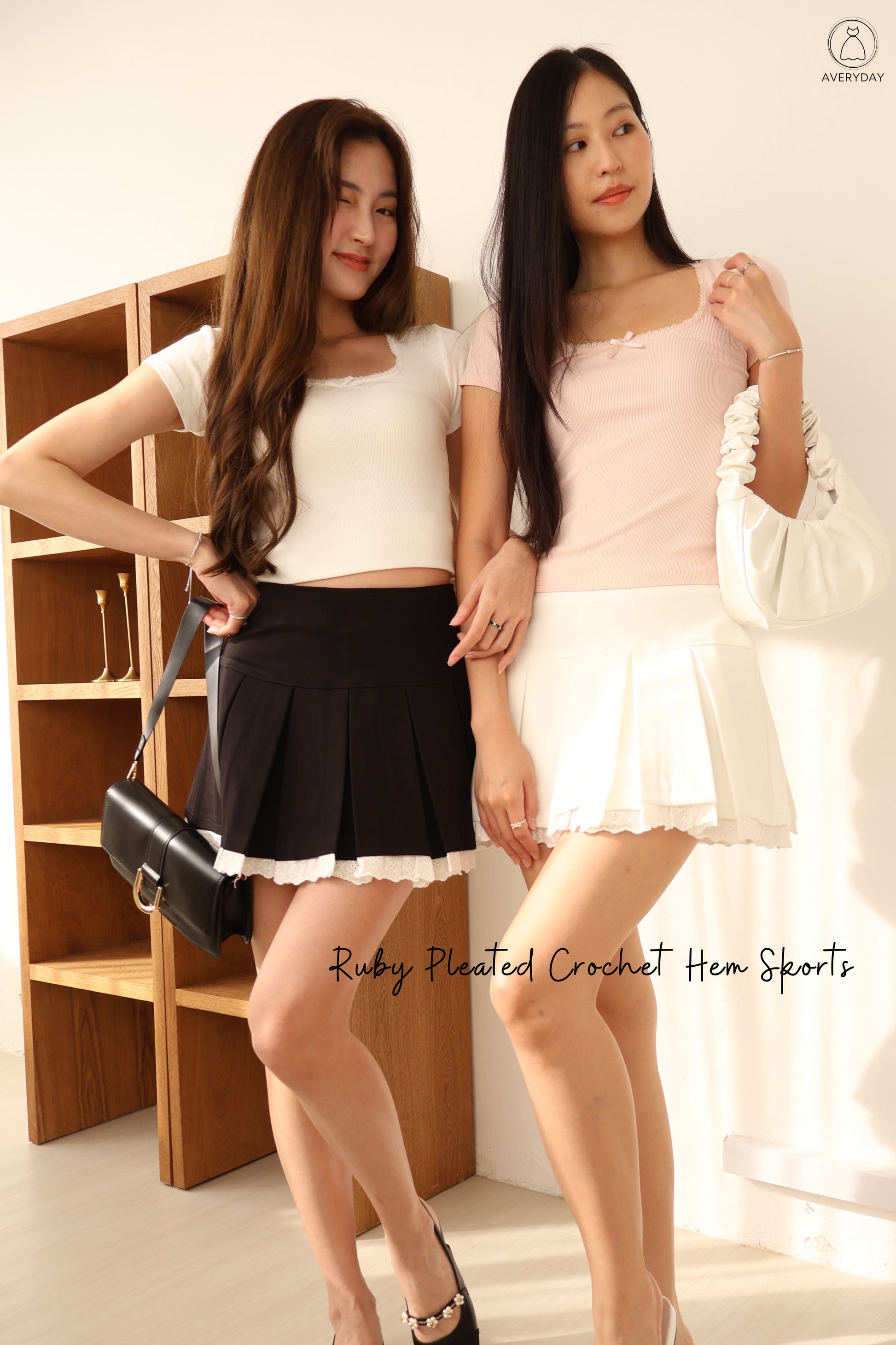 ₊˚ෆ Ruby Pleated Crochet Hem Skorts ₊˚ෆ