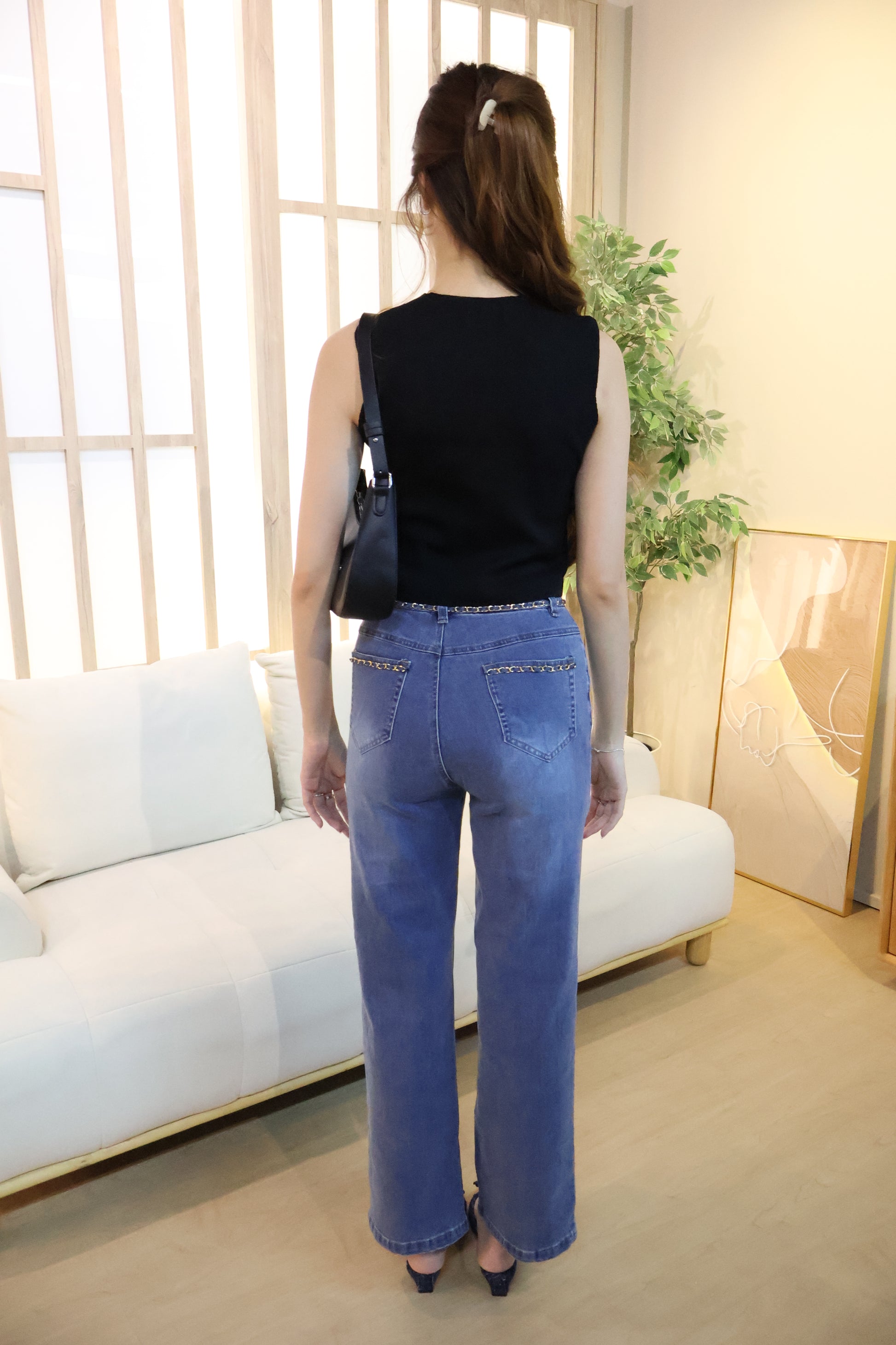 Bottom: *Premium* Beryl Chain Jeans In Mid Wash