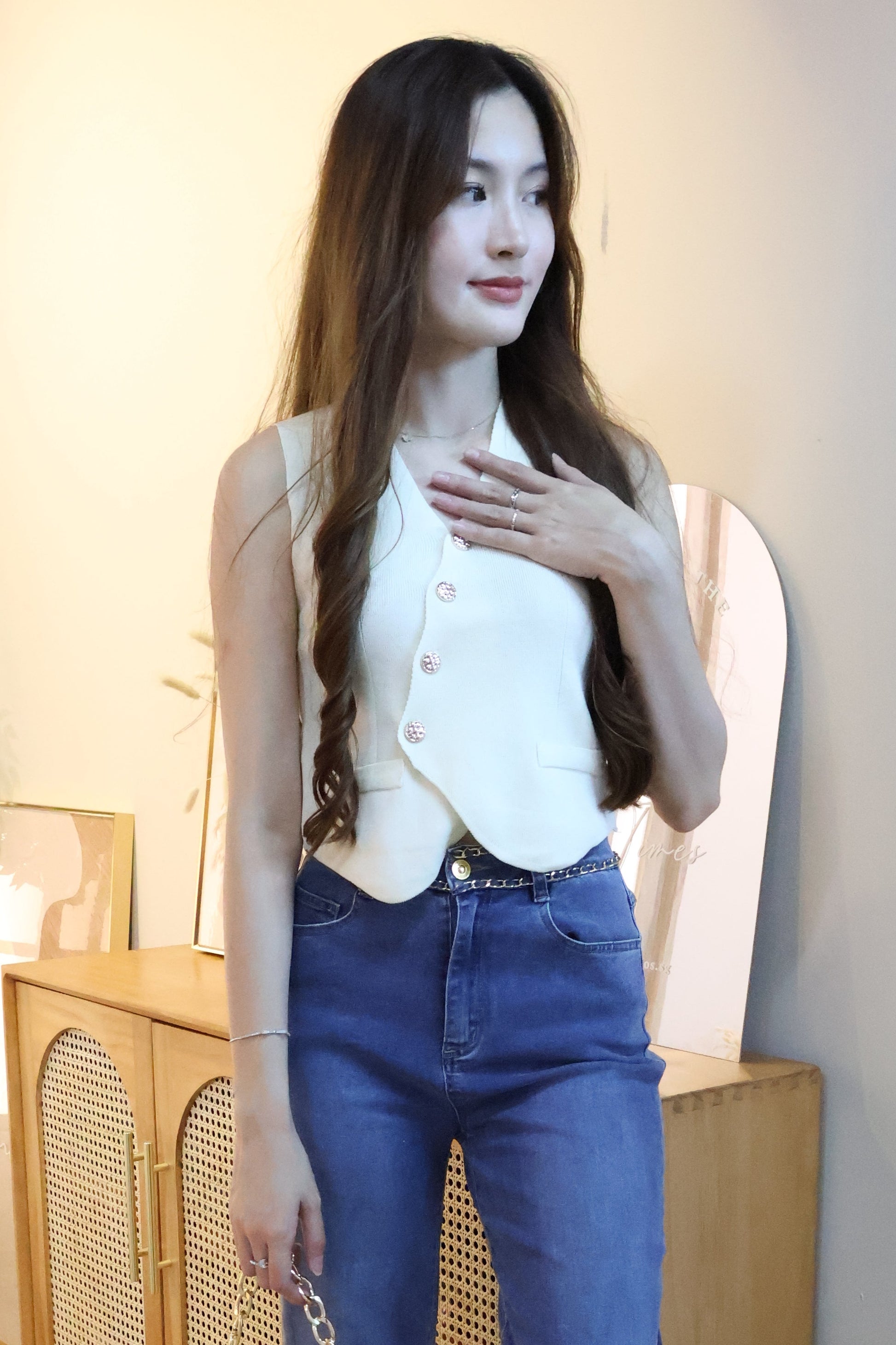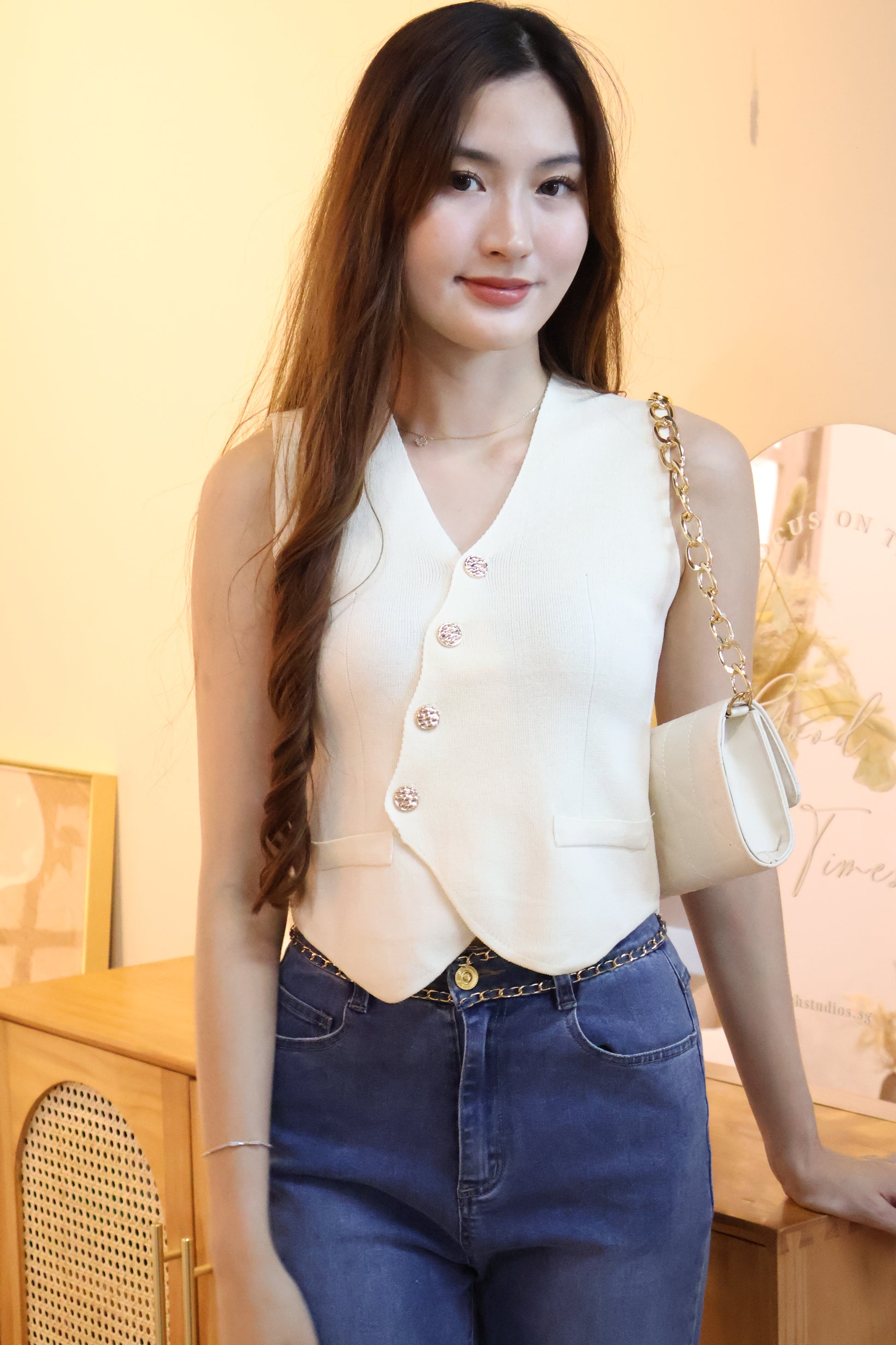 Timeless, effortless, and undeniably chic — Sandrick is your go-to vest top this season. Crafted in a cooling knit fabric, it keeps you comfortable in our warm weather while giving you that laid-back, off-duty charm. Designed in elegant earth shades for an old-money aesthetic, this piece is elevated with polished gold buttons that add just the right touch of class.
