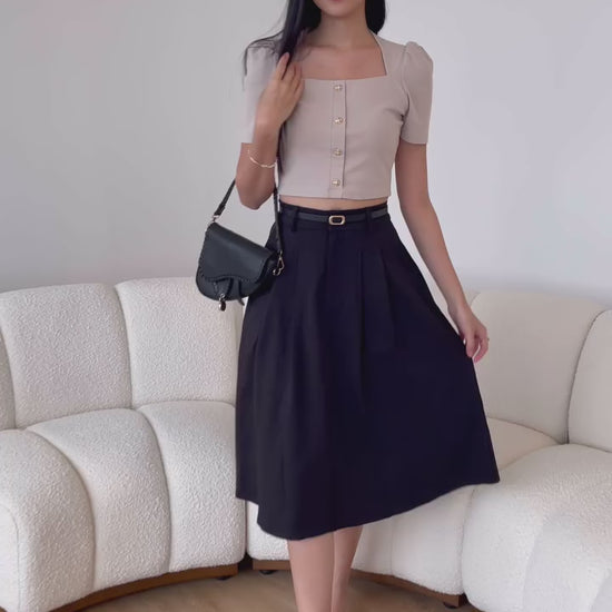 Bottom: Gillan Belted Midi Pleat Pocket Skirt In Sand