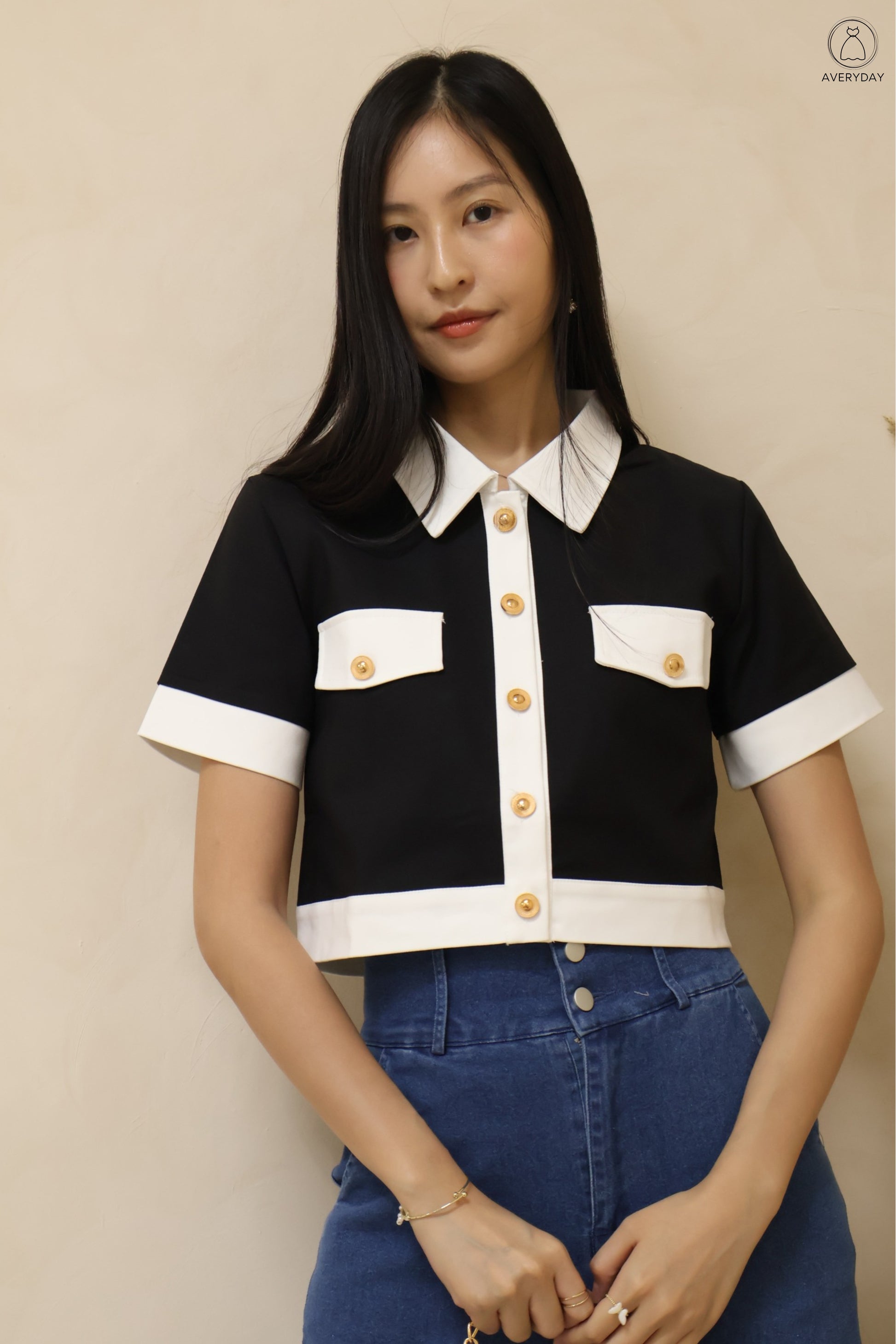 Sierra is the definition of understated elegance. This sleek, structured button-on top is designed with contrasting rims for an elevated ‘Chanel-inspired’ touch, finished with luxe gold buttons that add a refined, expensive look.