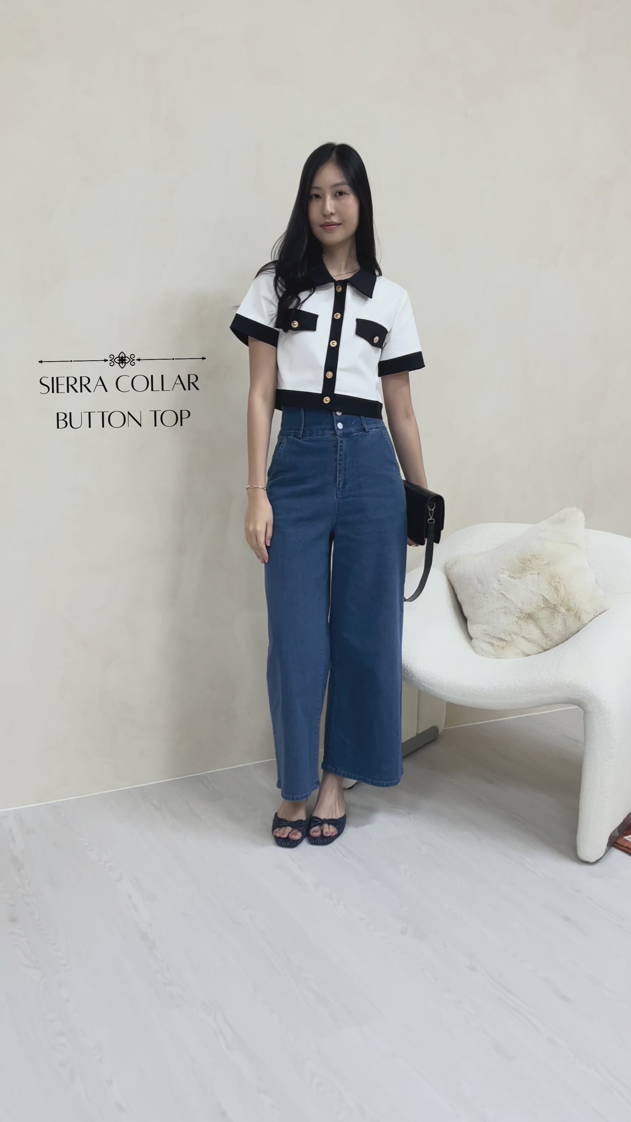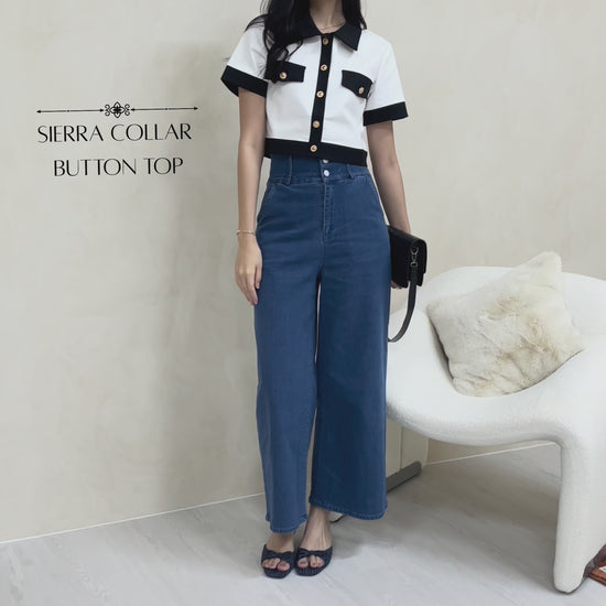 Sierra is the definition of understated elegance. This sleek, structured button-on top is designed with contrasting rims for an elevated ‘Chanel-inspired’ touch, finished with luxe gold buttons that add a refined, expensive look.