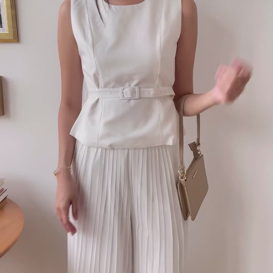 Umi Belted Top & Pleated Pants Co-Ords Set In White