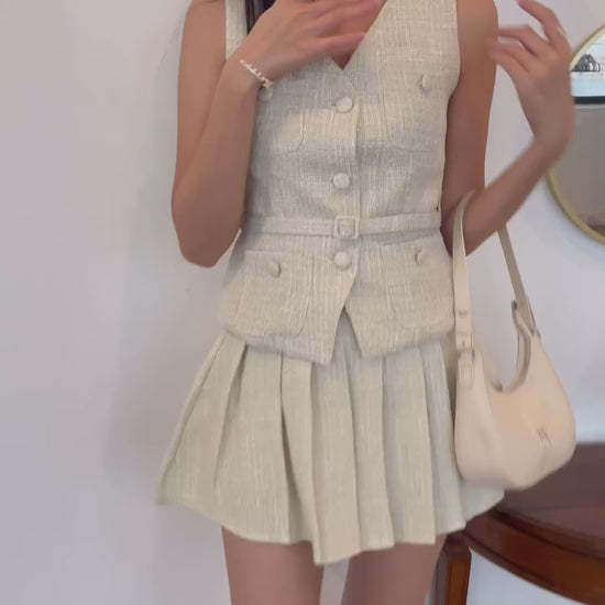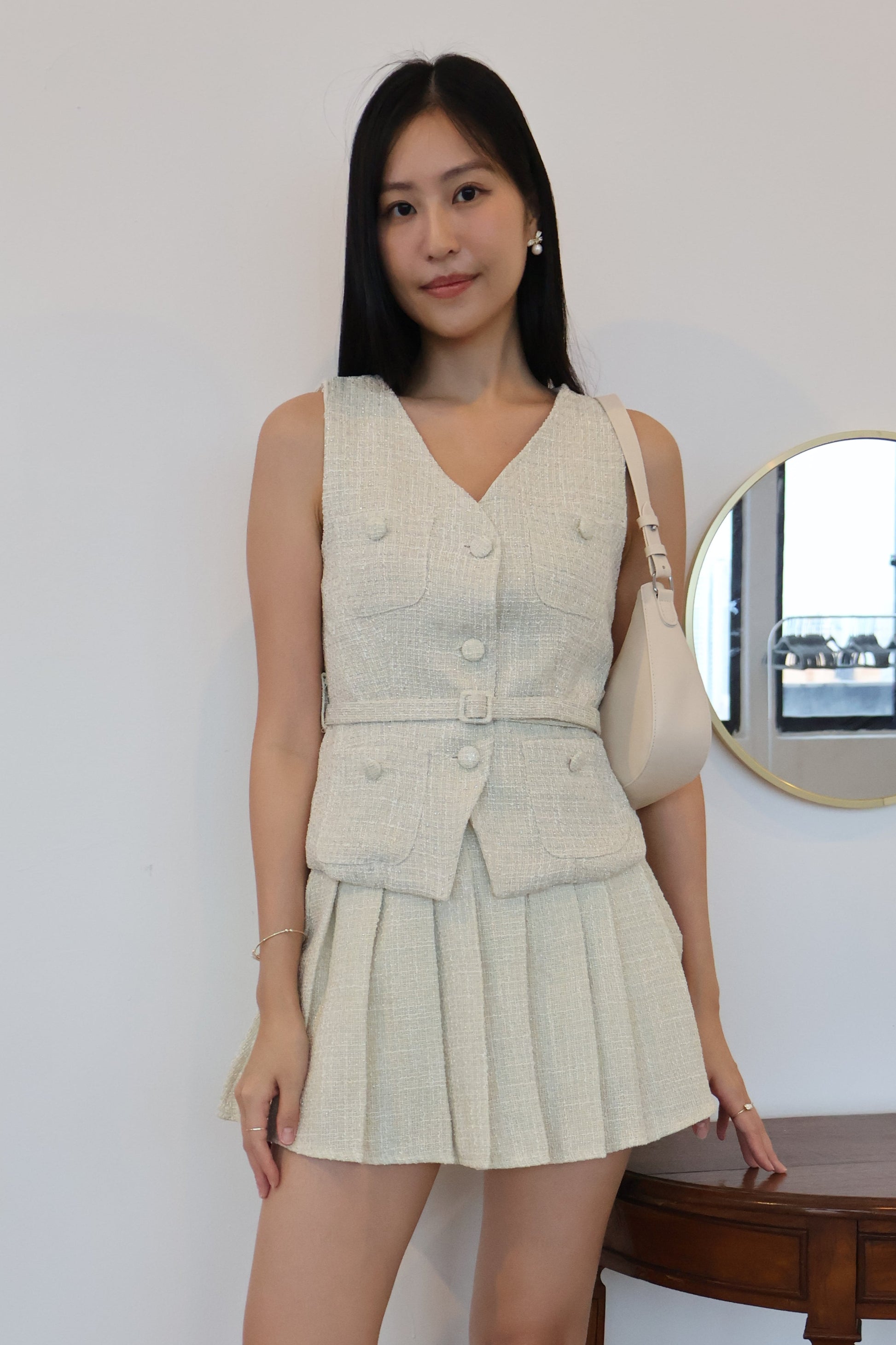 The elegance of tweed, redefined. Verity features a tailored vest top — a trending favourite this season — complete with a detachable matching belt that adds a touch of structure and sophistication.